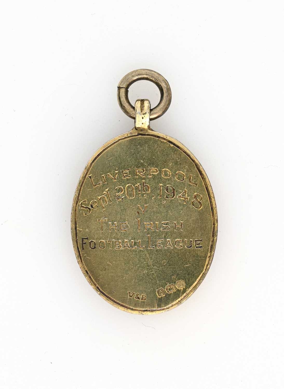 Stanley Matthews, a Football League silver gilt medal, 1948, inscribed Liverpool Sept 20th 1948 Versus Irish Football League, in fitted case, 15.6g