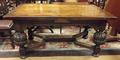 Jacobean style oak drawleaf dining table with carved bulbous supports and shaped stretchers, 117 x 38.5in.