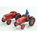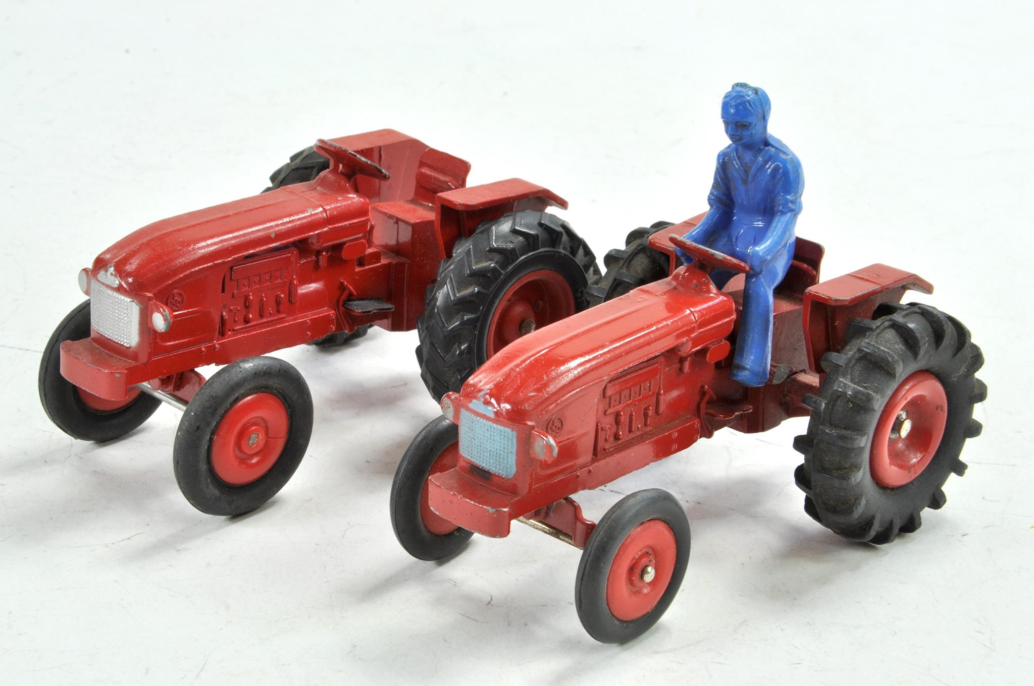 CIJ Vintage Issue Renault Tractor duo, in red including one with tinplate wheel centres, the other in plastic. Appear very good to excellent.