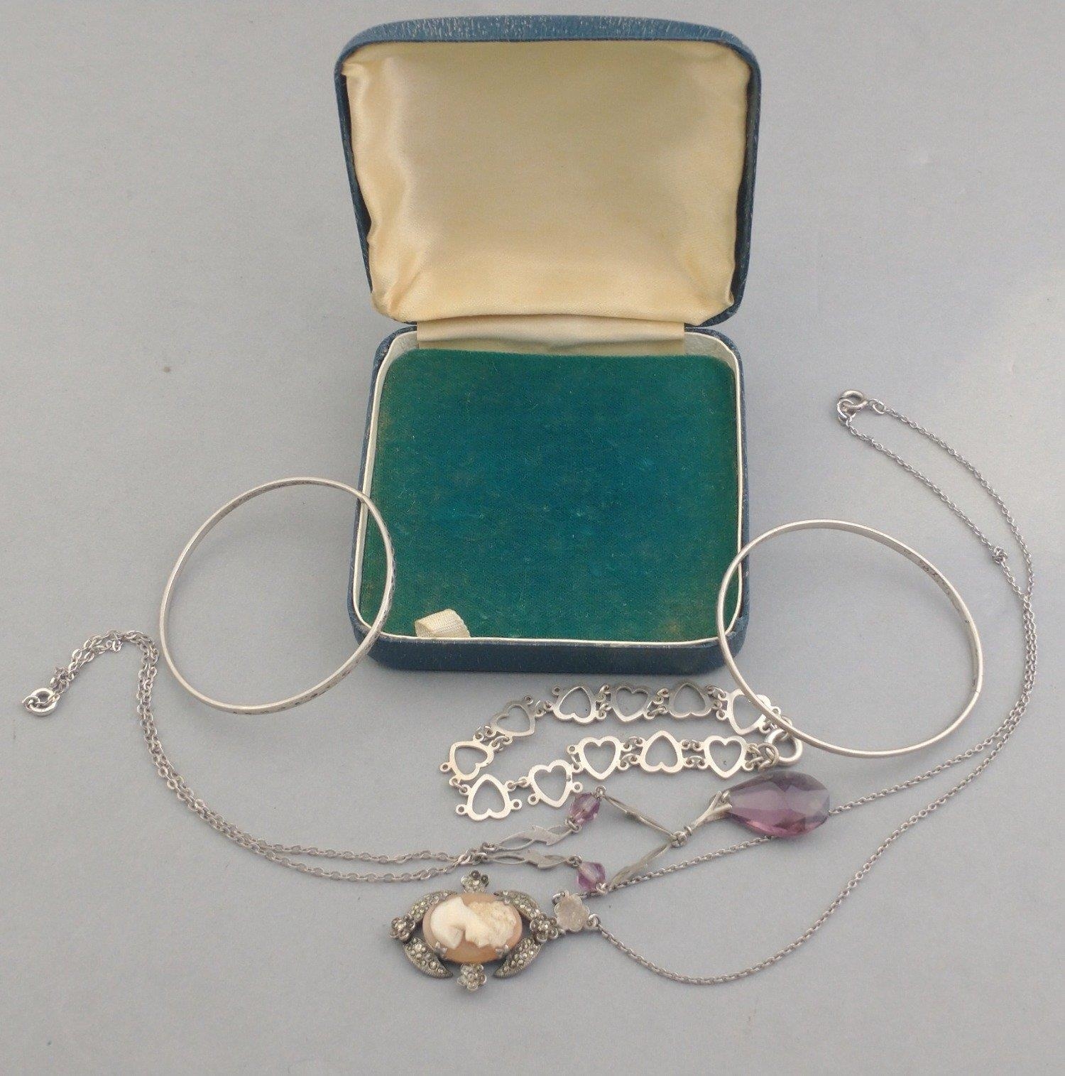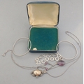 A collection of unmarked white metal jewellery and a PRETTY sterling silver stamped purple tear drop necklace 4.43g gross etc