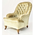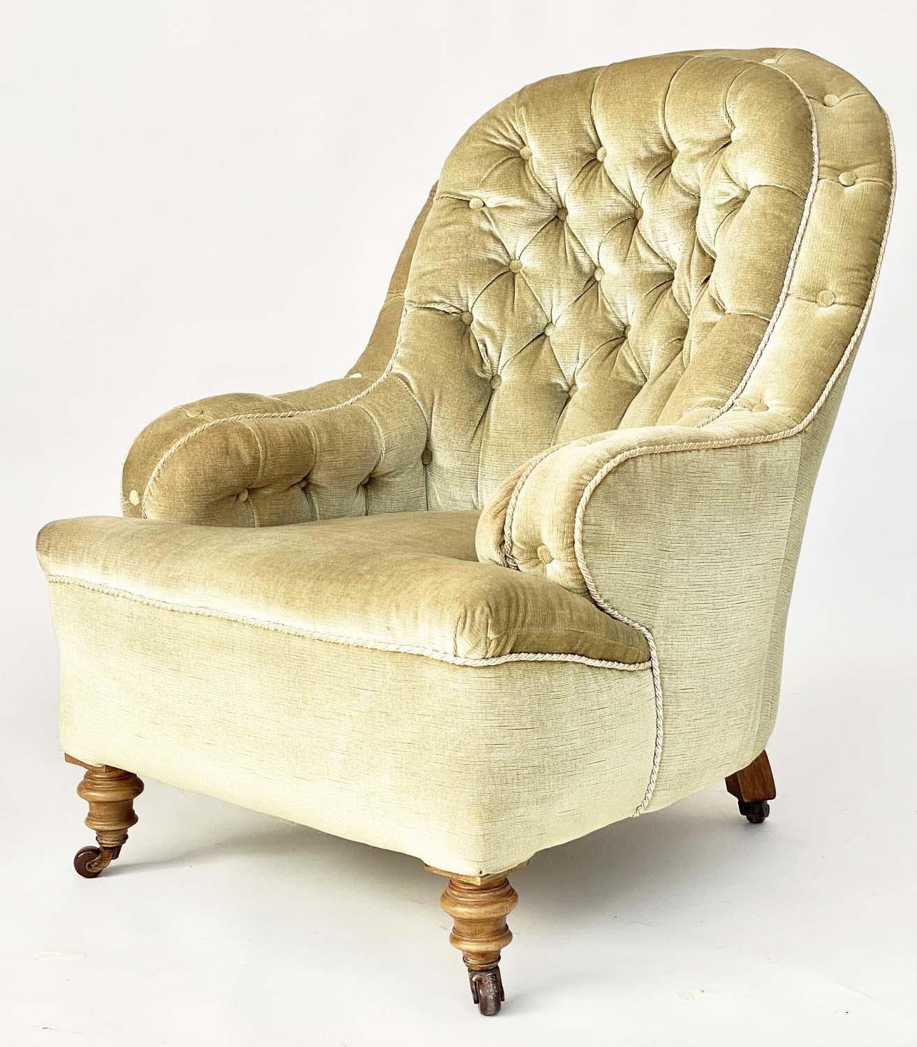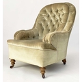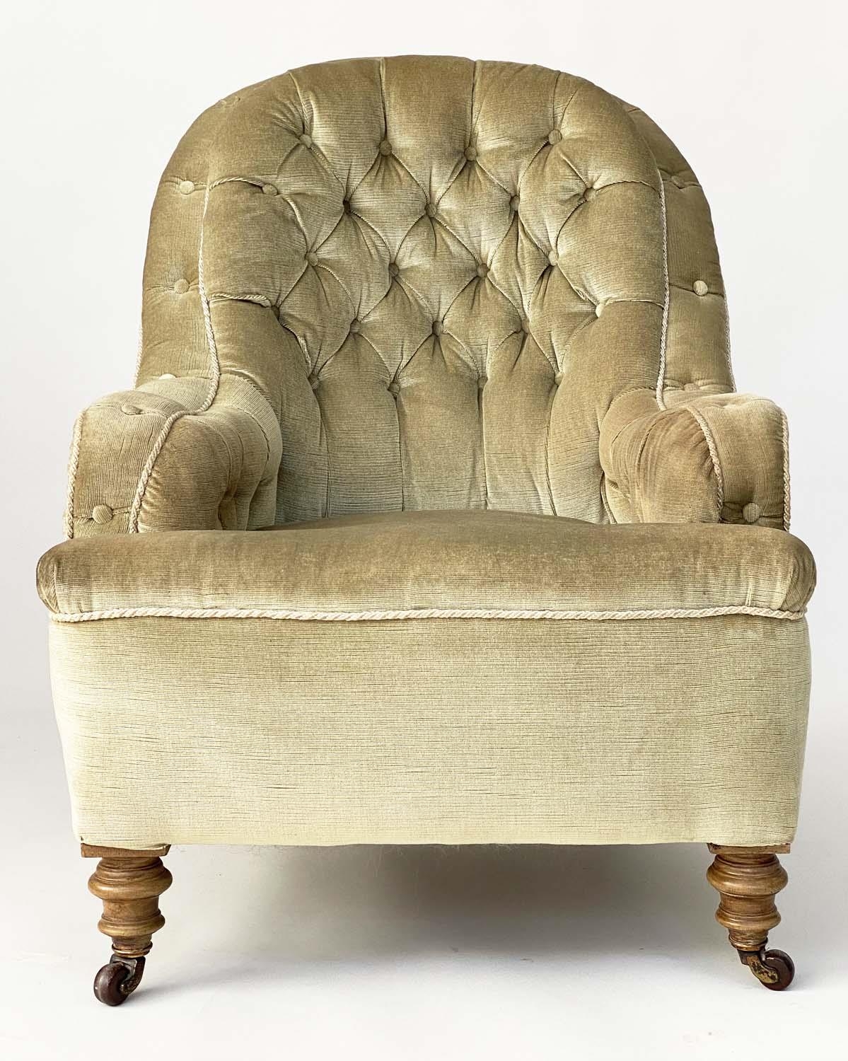 ARMCHAIR, corded and buttoned velvet with arched back and tu...