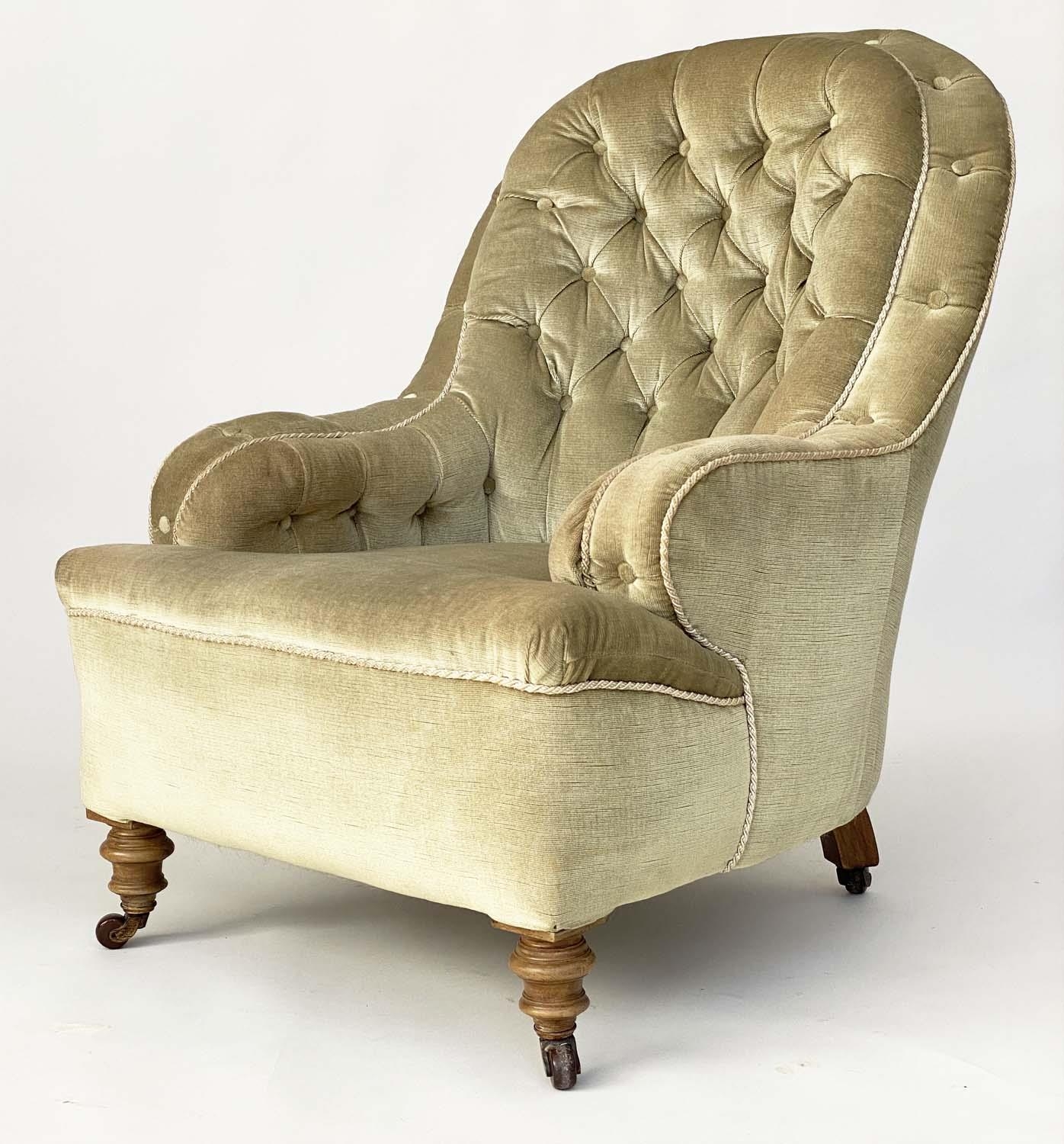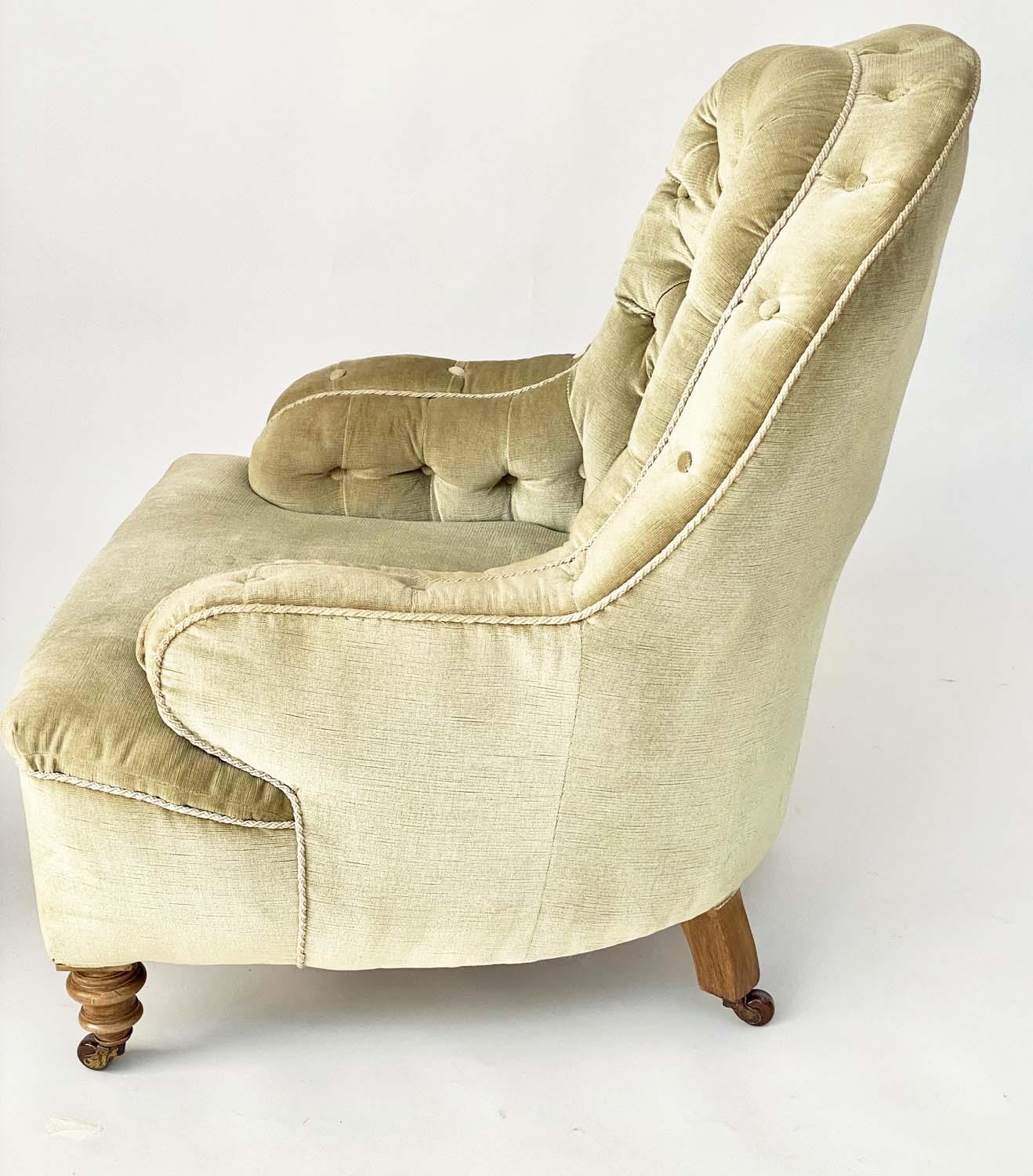 ARMCHAIR, corded and buttoned velvet with arched back and turned front supports, 67cm W.