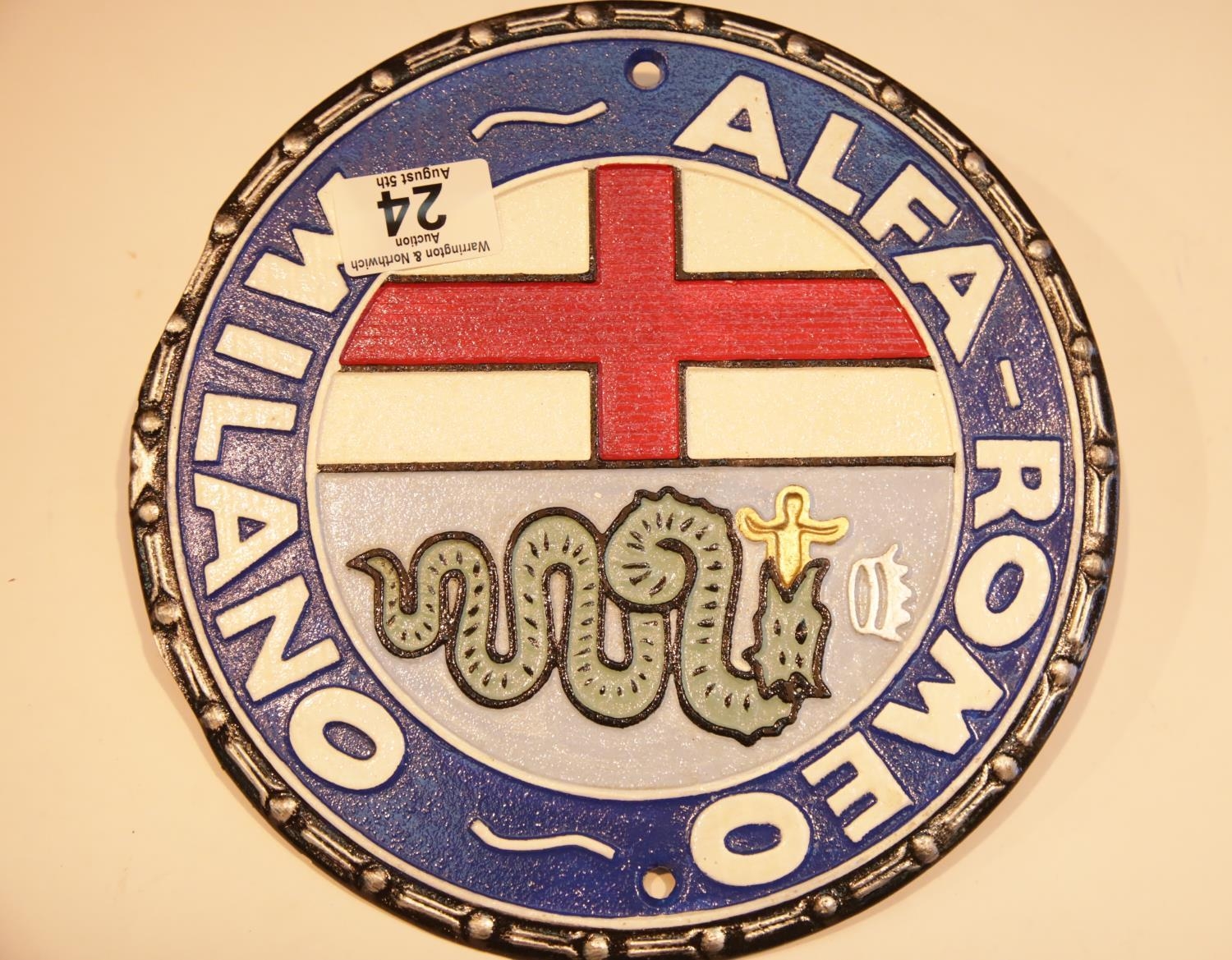 Cast iron Alfa Romeo sign, D: 24 cm. P&P Group 2 (£18+VAT for the first lot and £2+VAT for subsequent lots)