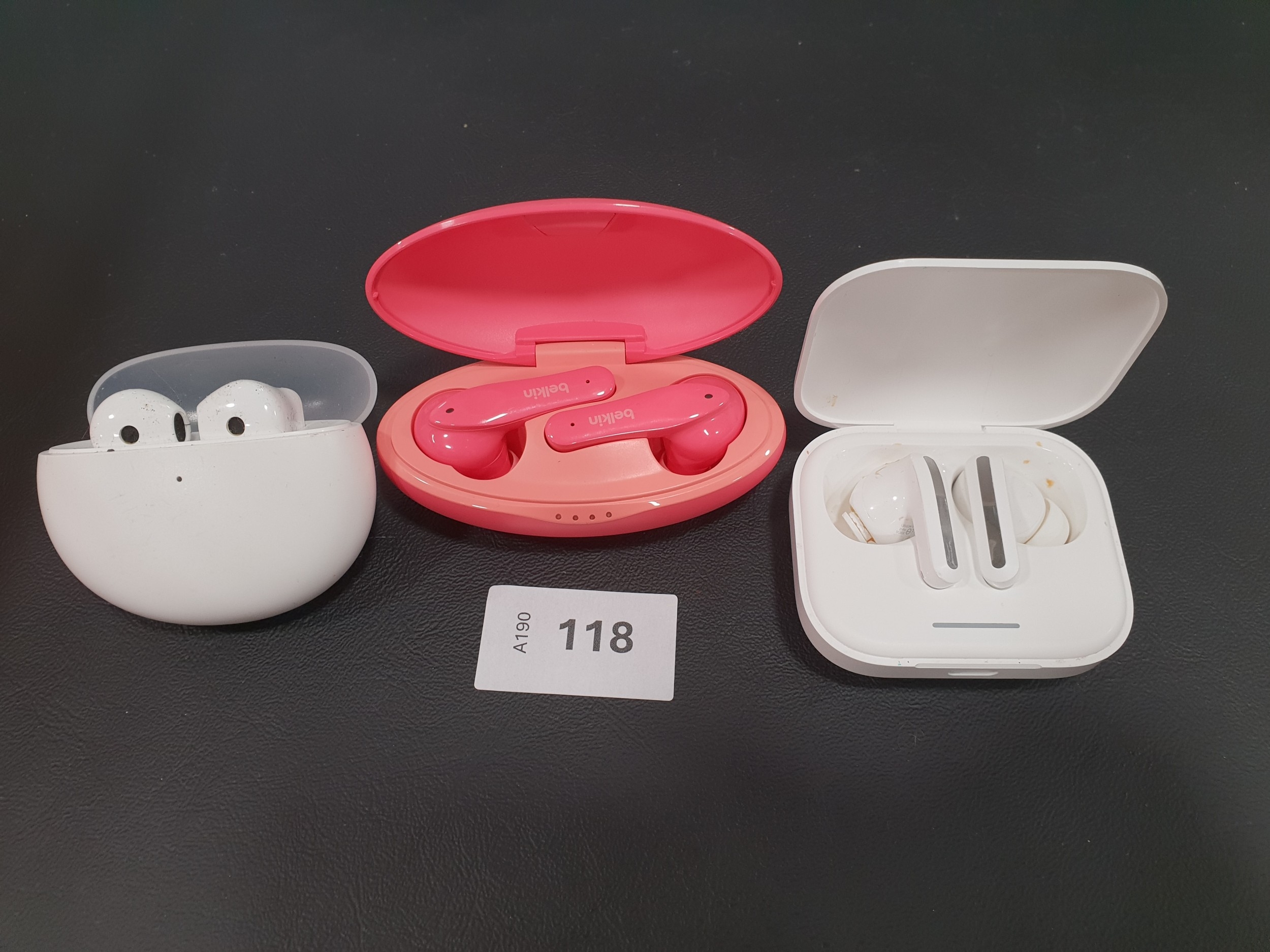 THREE PAIRS OF EARBUDS IN CHARGING CASES comprising Belkin, ...