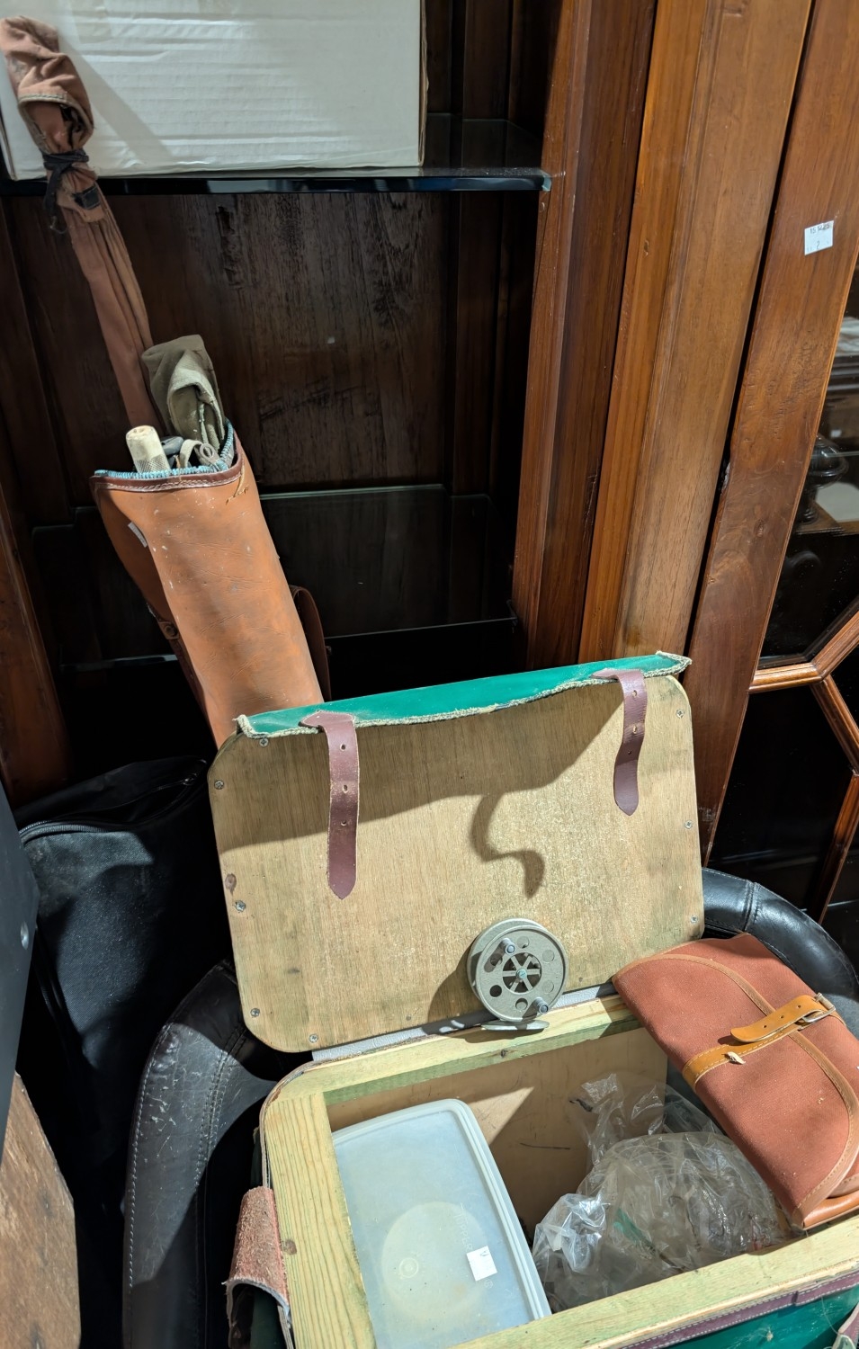 A selection of fishing tackle, including:- rods, reels and a bag of accessories.