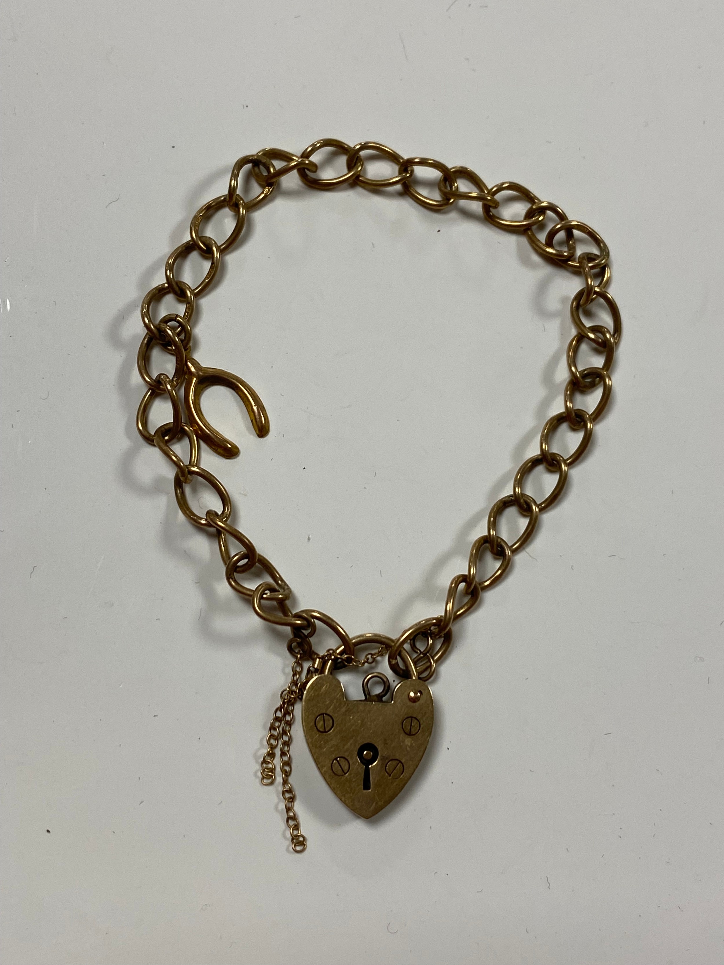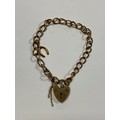 A 9ct gold charm bracelet with heart shaped padlock clasp -