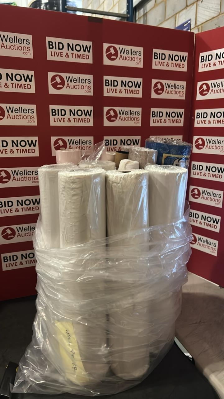 MIXED BAG OF ROLLS OF WALL PAPER , GENERAL PAPER, CLEAR ETC