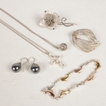 A quantity of silver jewellery. Including brooches, pendants on chain, bracelet, earrings, etc.