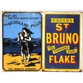 A Pair of Late XX Century Vintage Tin Adverts, one for St Bruno Flake, the other Beechams Pills, 38cm x 25cm (2).
