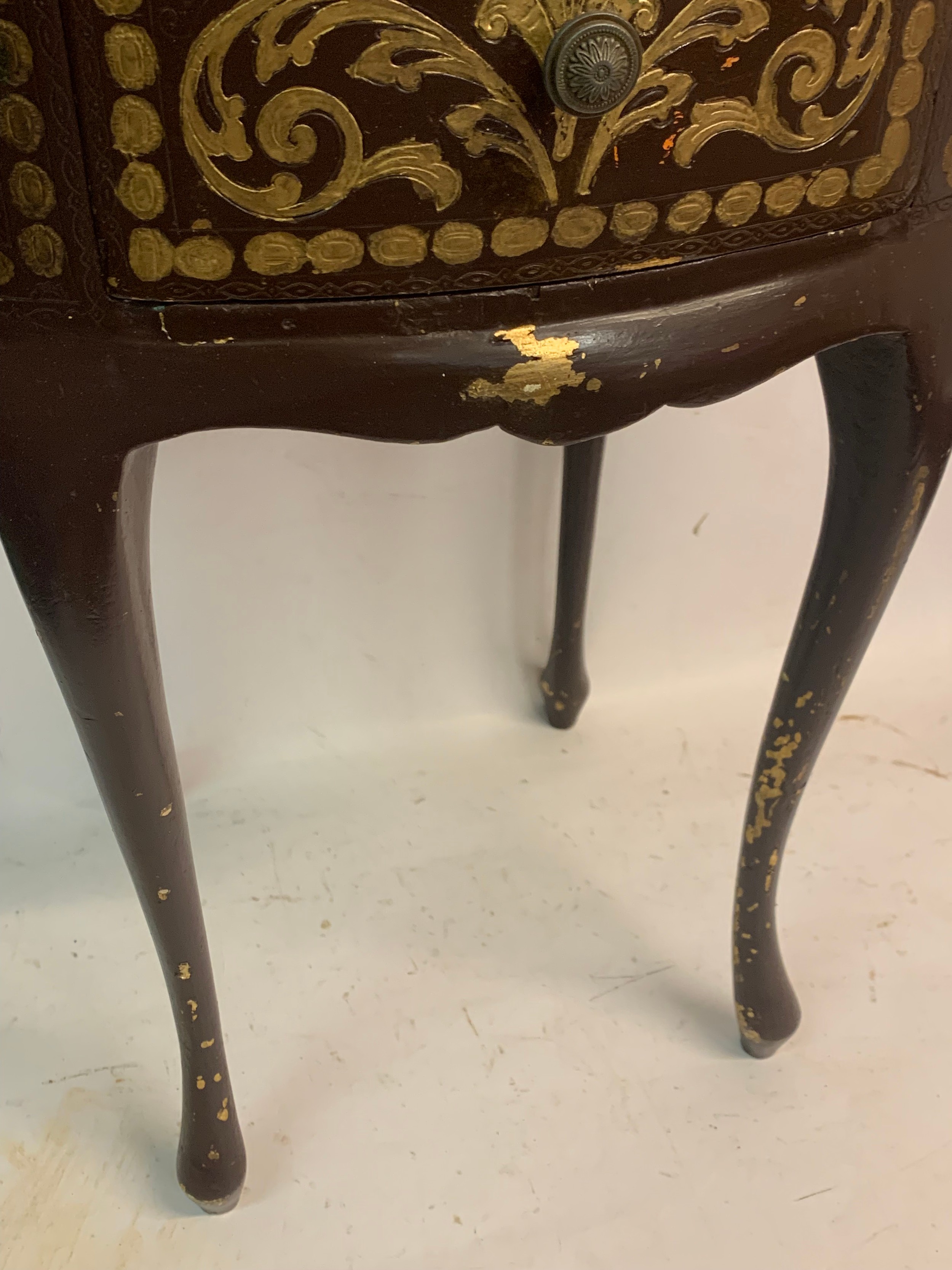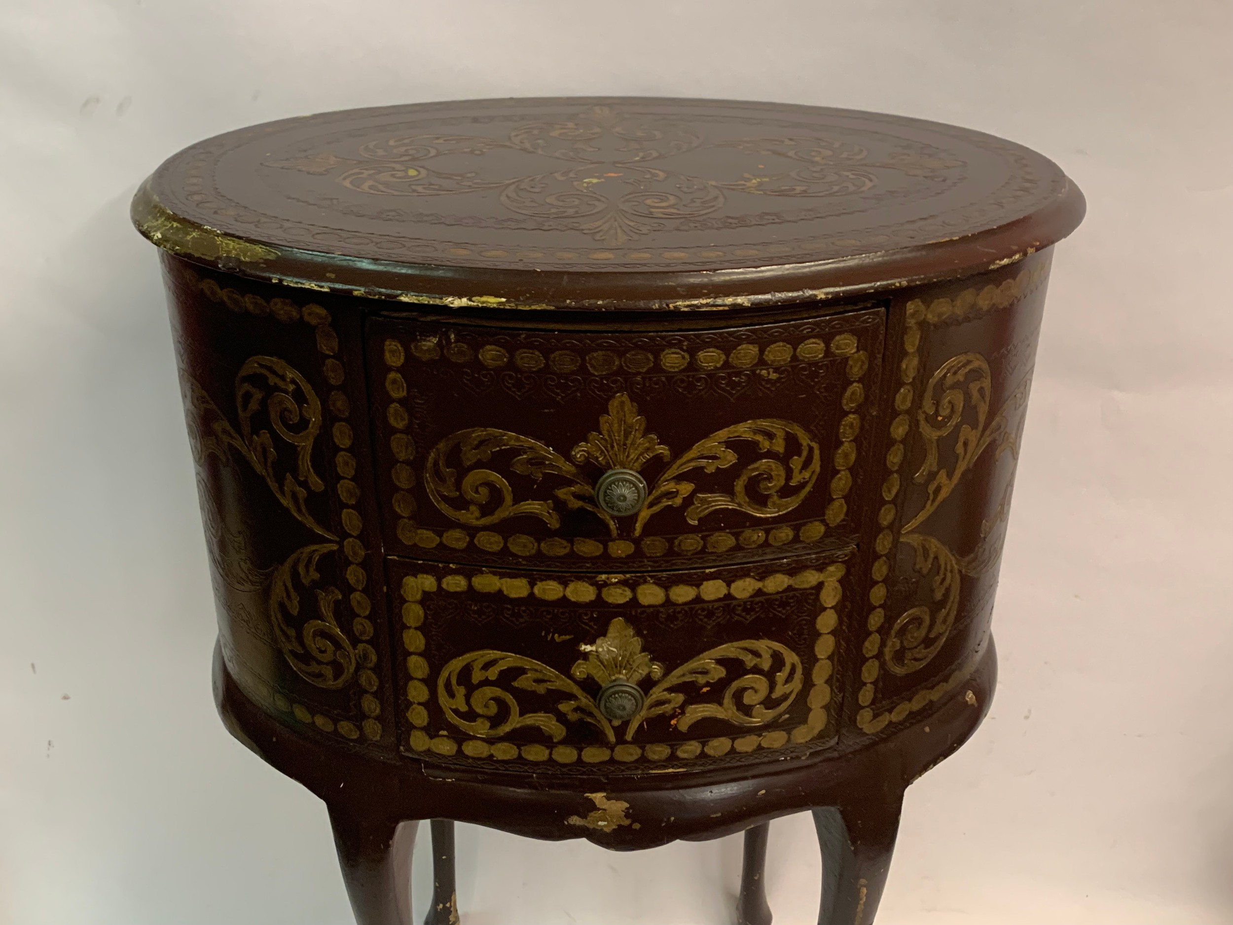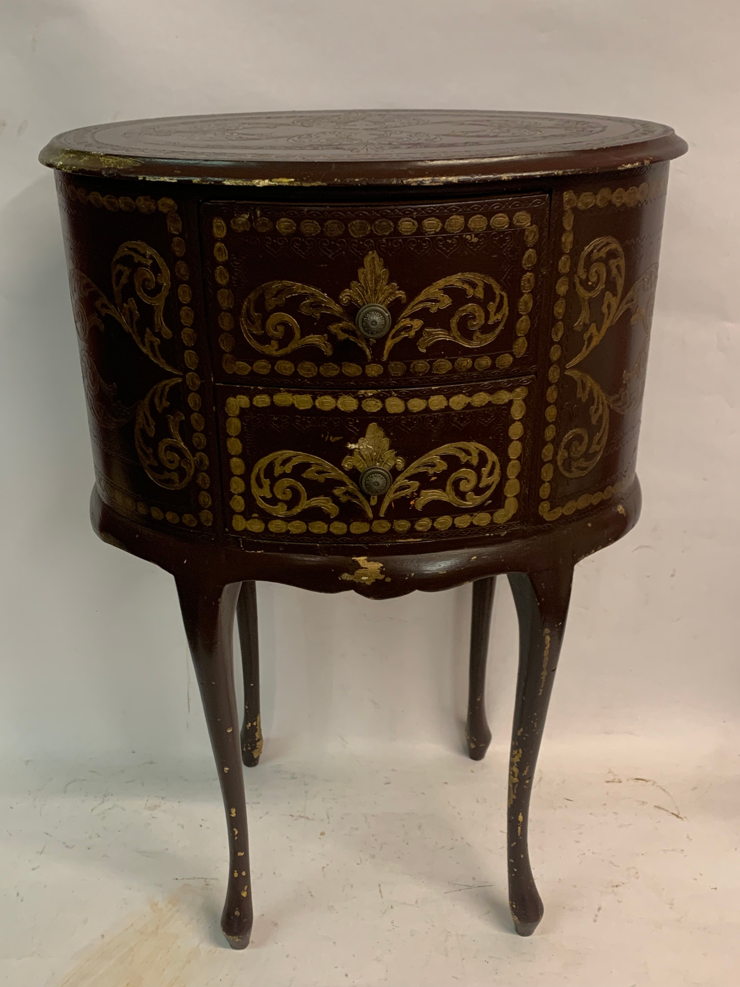 Vintage Painted Circular Wood French Two Drawer Table With Traces Of Gilt Paint Coming Through 52 x 37 x 74 cms