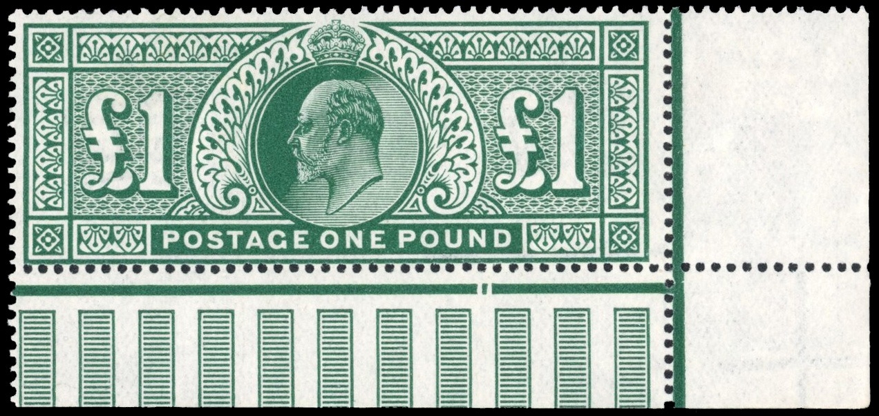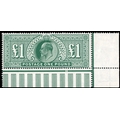 1911 Somerset House KEVII £1 deep green in bottom right corner marginal fresh large part o.g