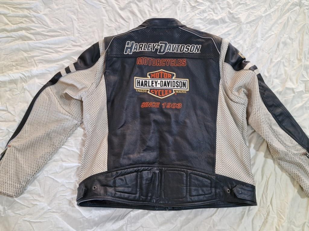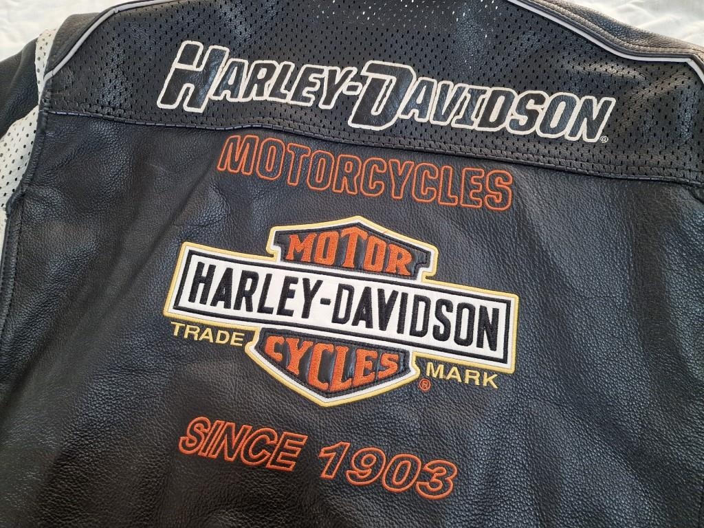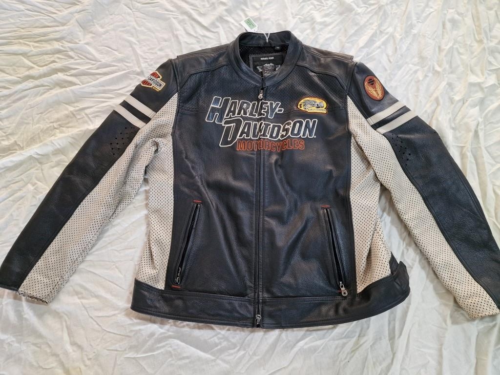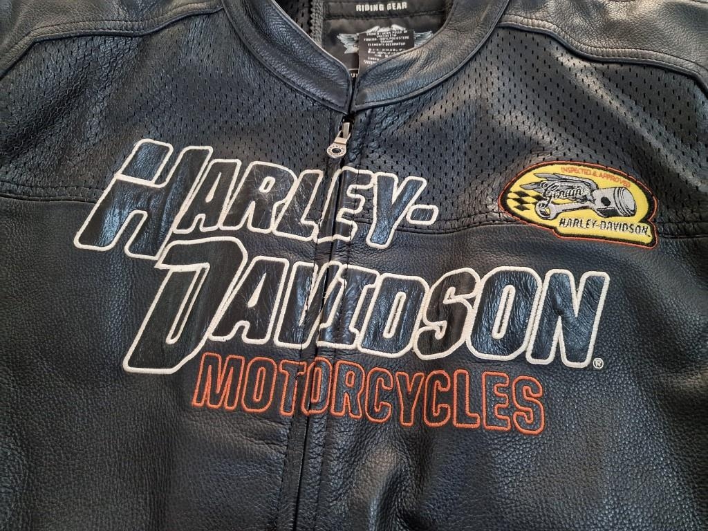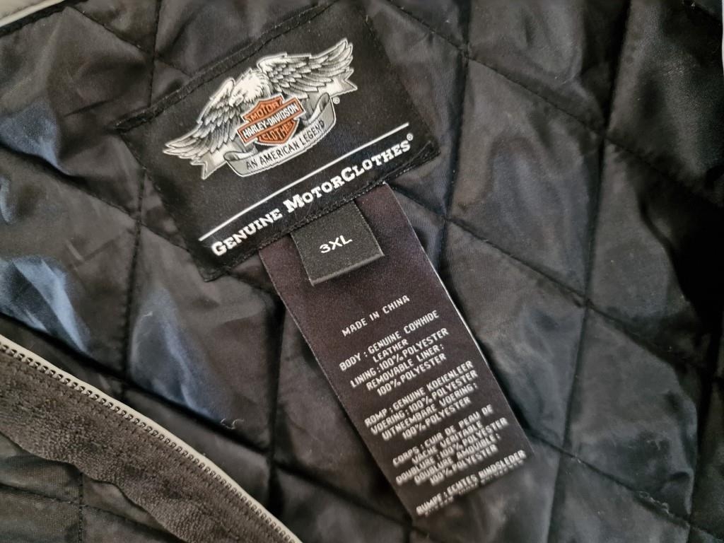 Harley Davidson 'Genuine MotorClothes Riding Gear' Black Cowhide Leather Motor Cycle Jacket (Size: 2XL), Together with Inner Liner Body Warmer, (3XL), (2) * Looks in Unused Condition *