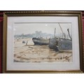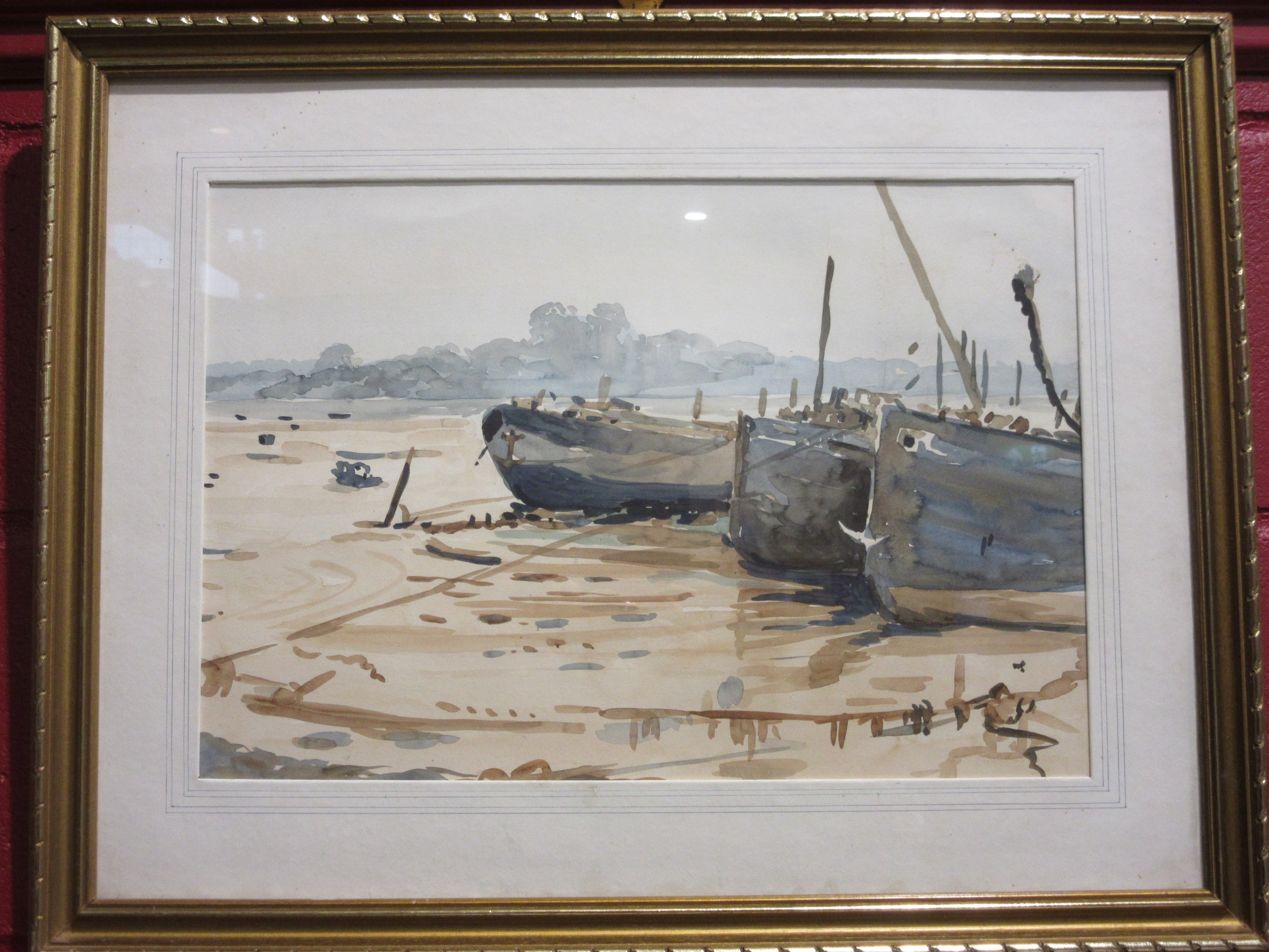 CHARLES GRIGG TAIT (1915 - 1995) A framed and glazed watercolour, 'Barges at Pin Mill'. Label verso. Image size 32.5cm x 47.5cm
