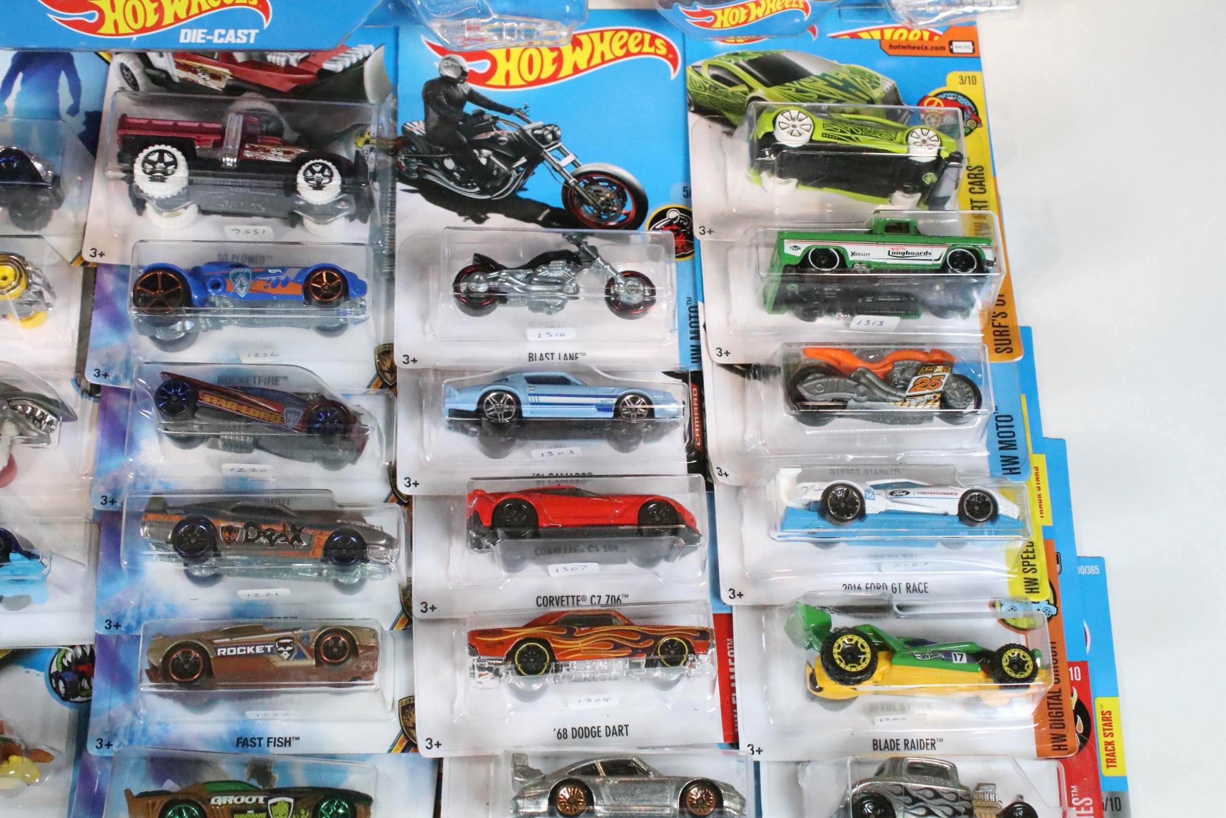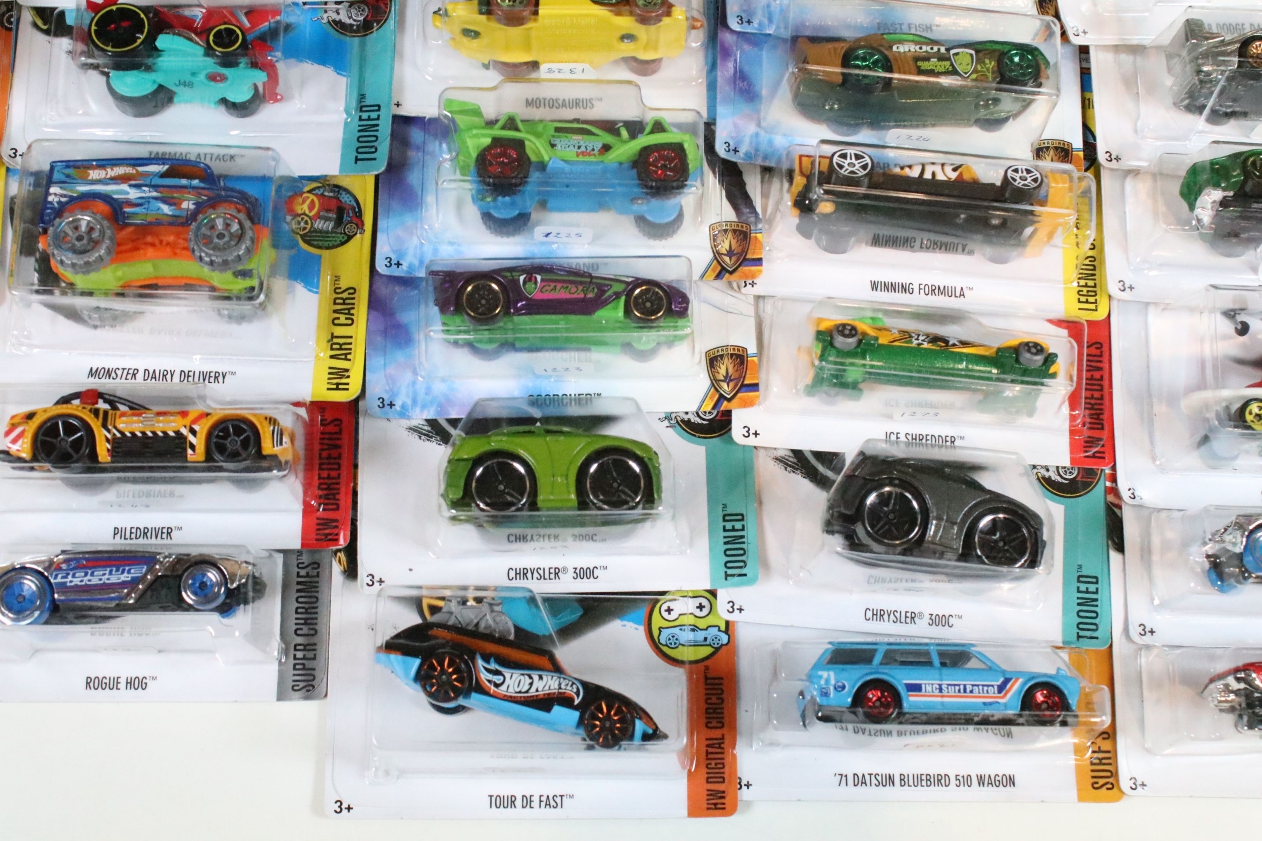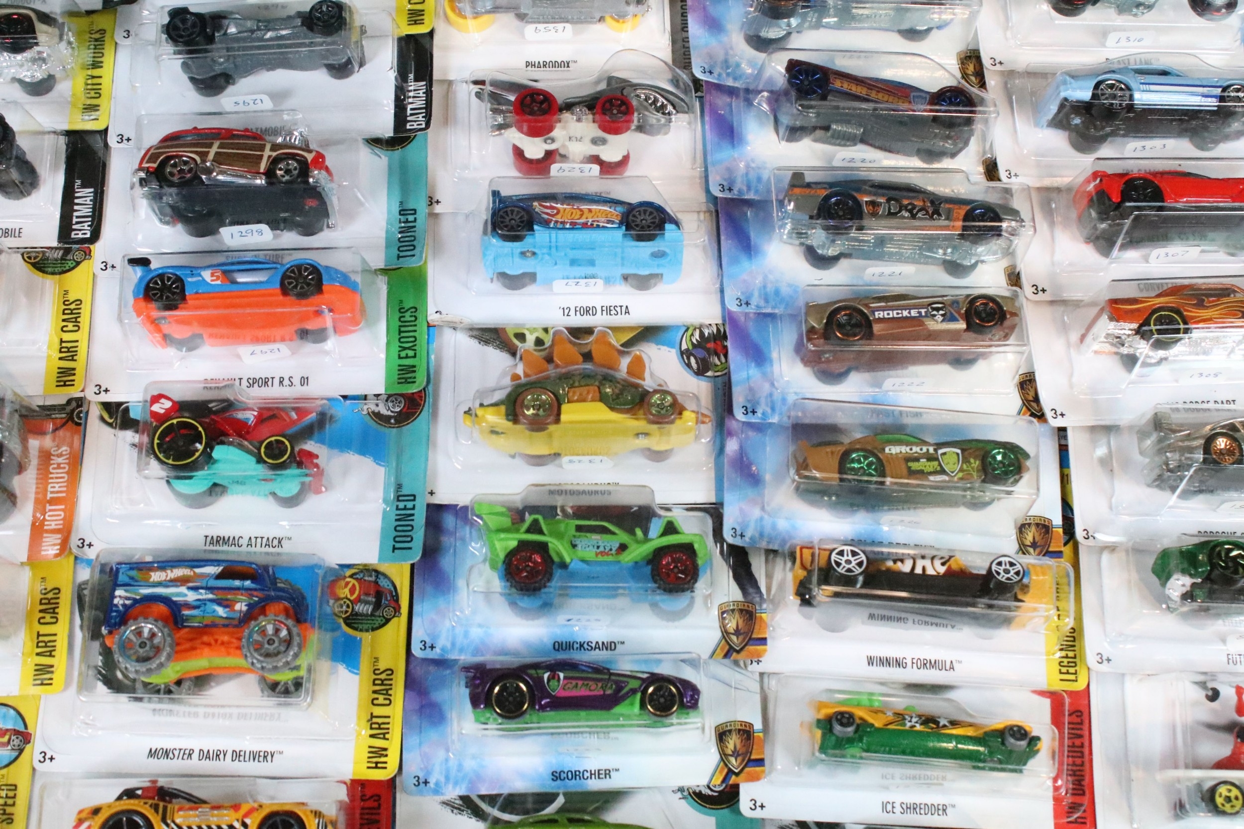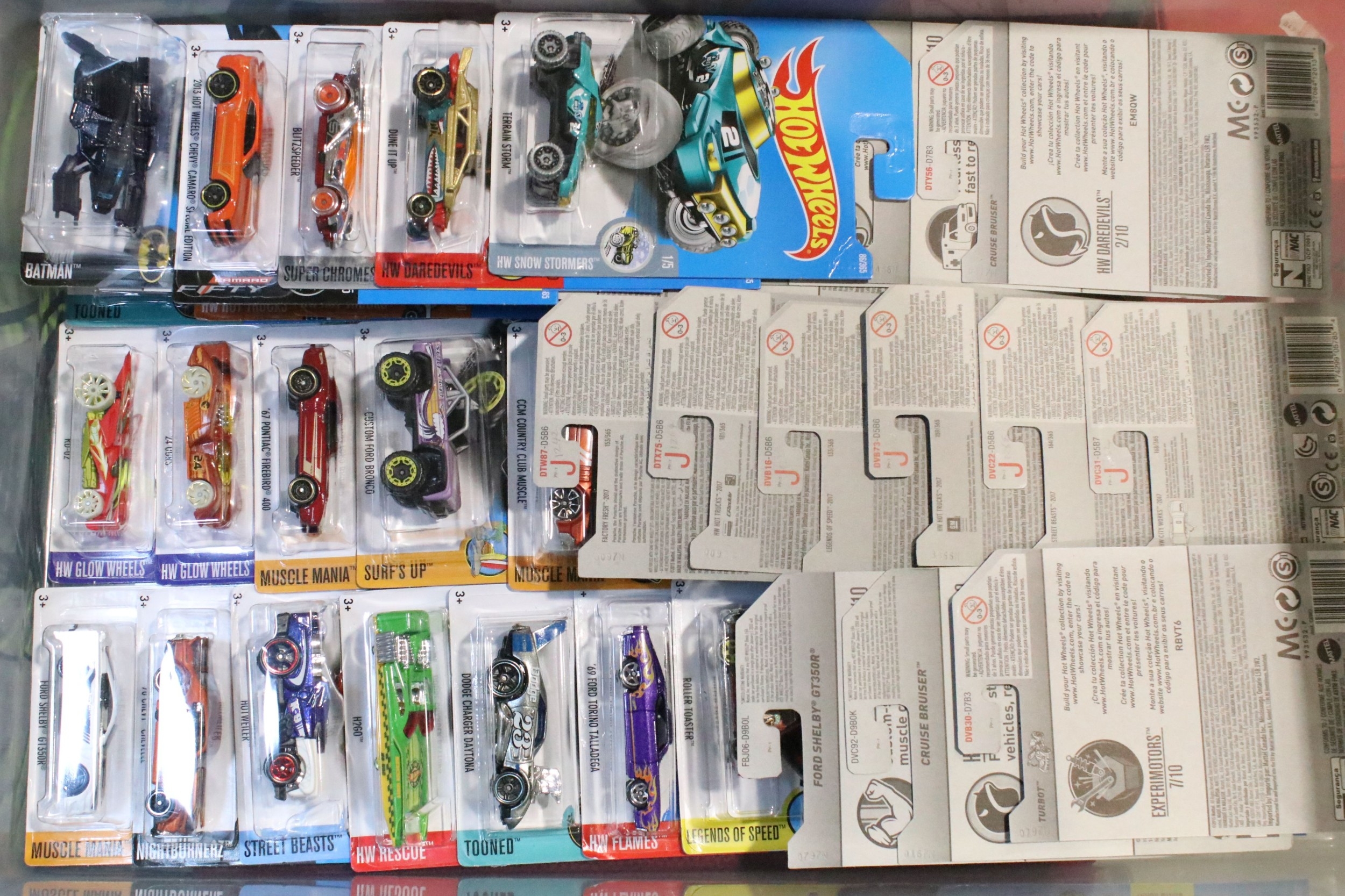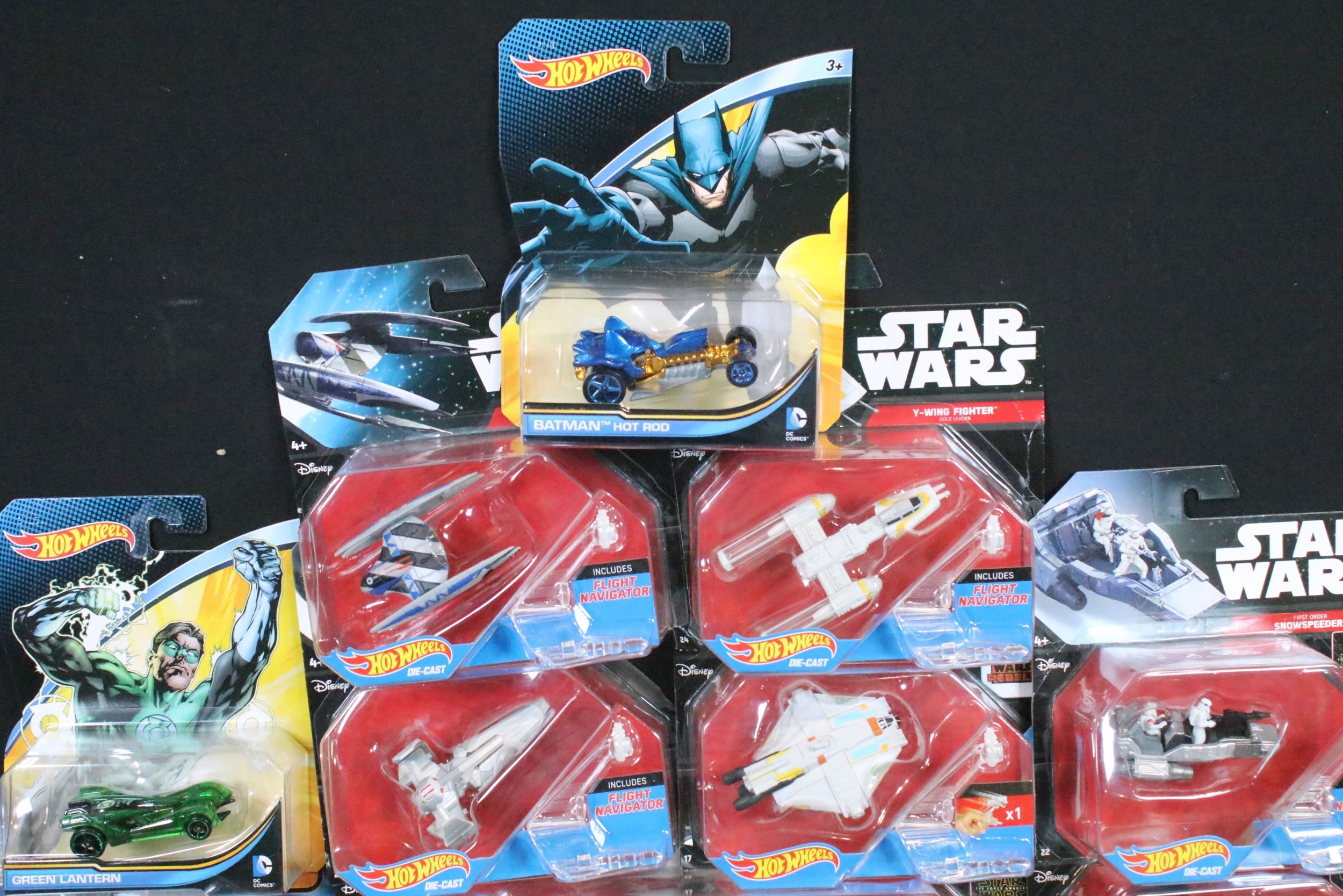 Around 105 boxed / carded Mattel Hot Wheels diecast models to include Star Wars, Marvel Guardians Of The Galaxy Vol.2, DC Comics Batman, Legends Of Speed, etc, all ex