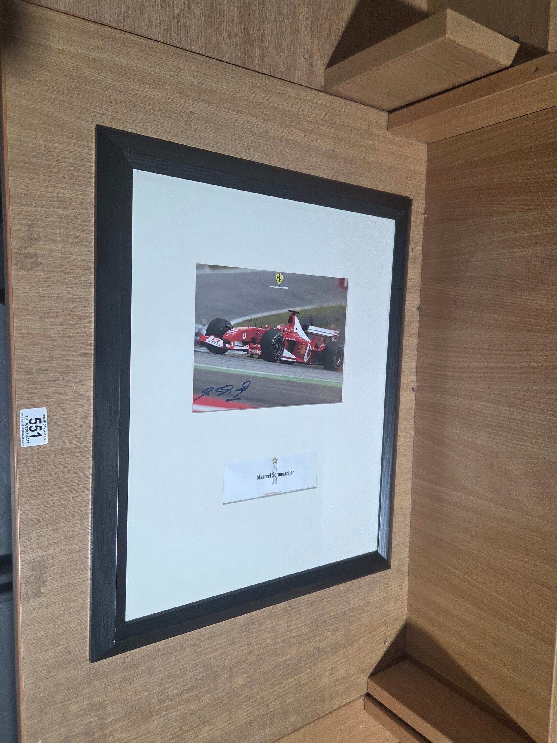 A framed signed photograph by Ferrari Formula 1 driver Michael Schumacher