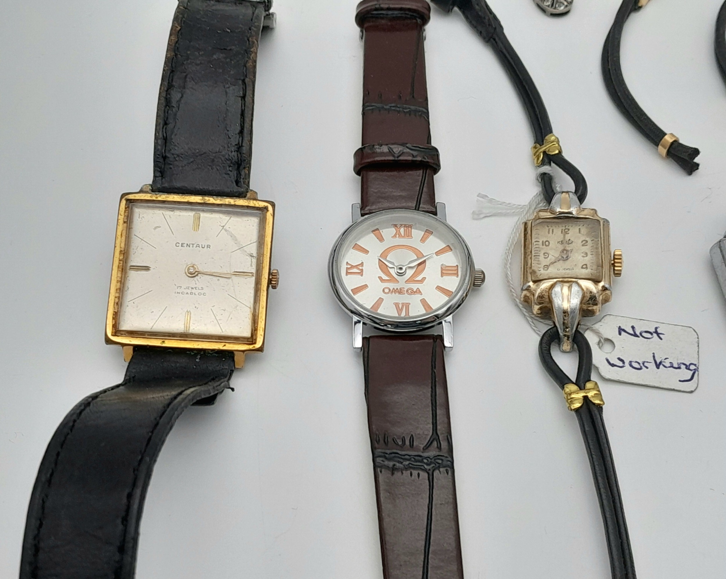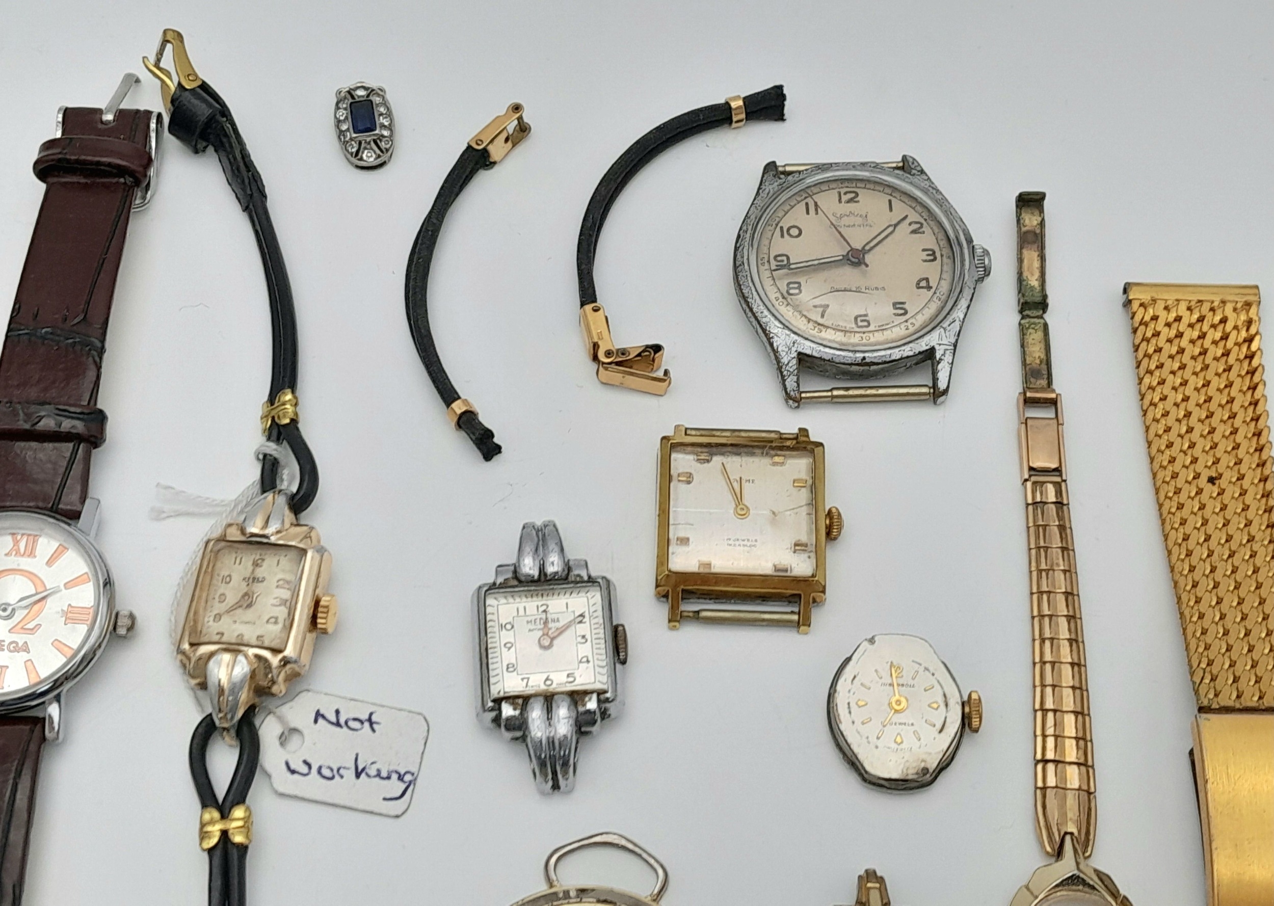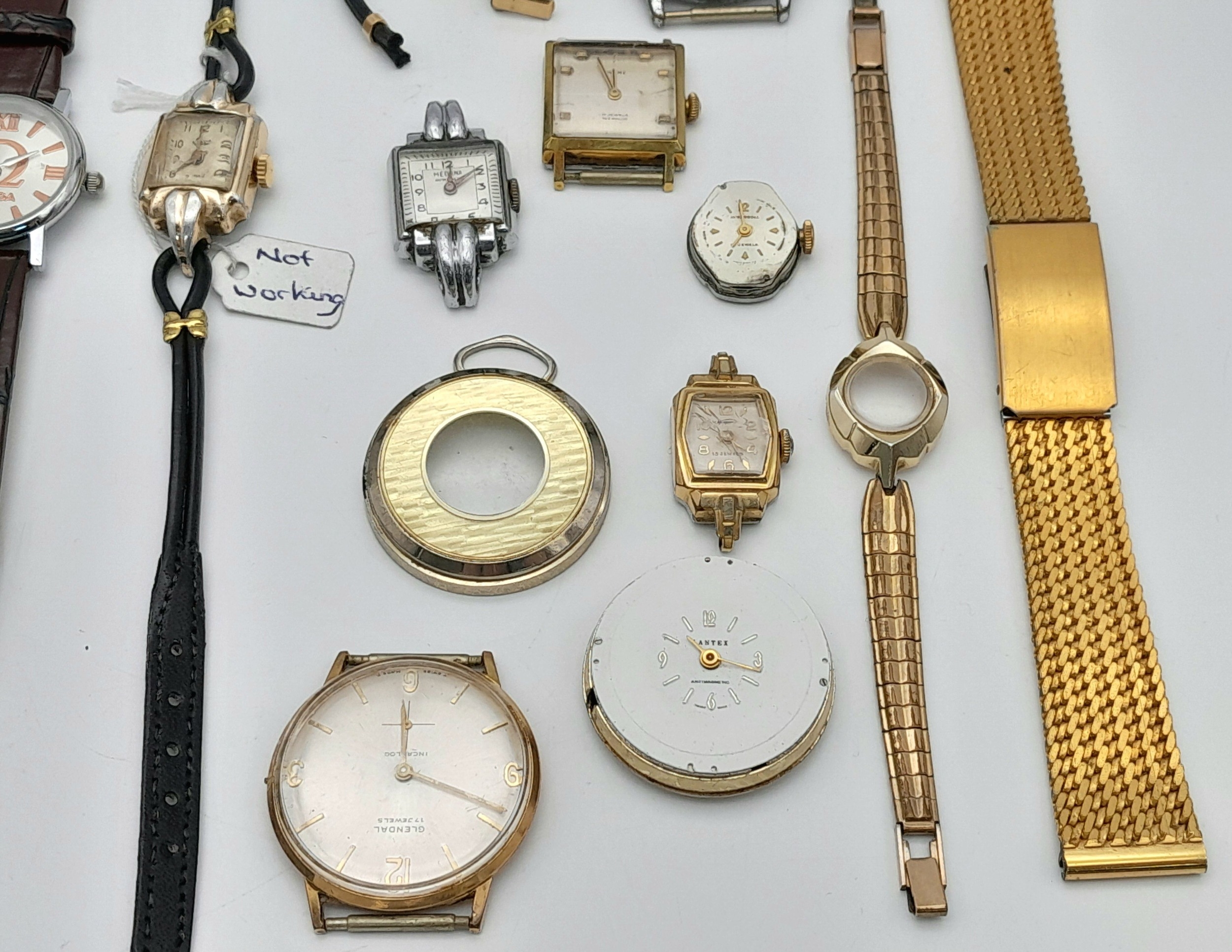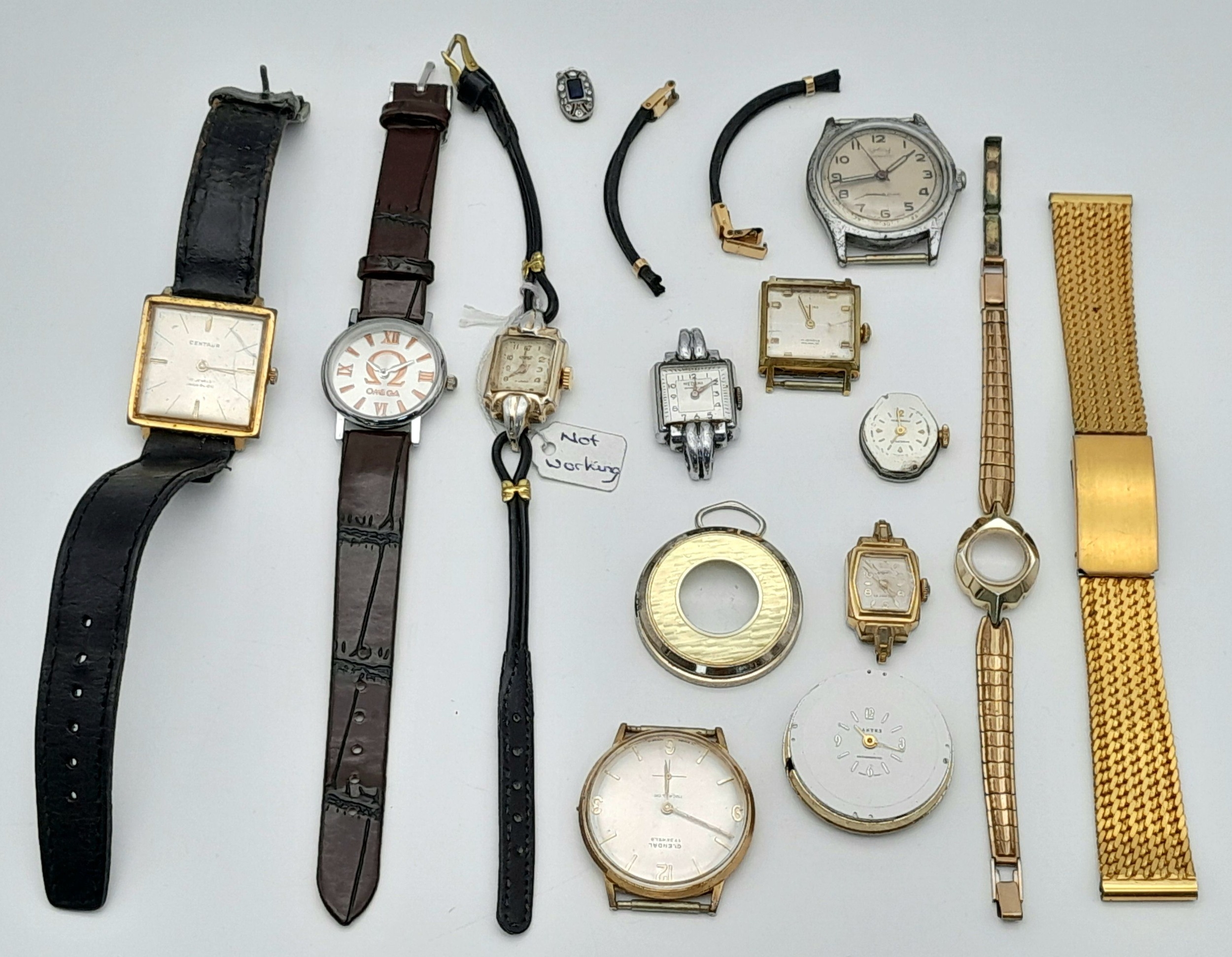 A selection of vintage watches and watch cases (as found). Includes a mix of strap and bracelet designs in gold-tone and leather. Ideal for collectors, wear, or parts repair. Offered as a group lot.
