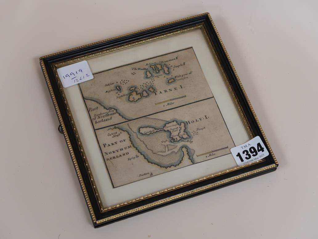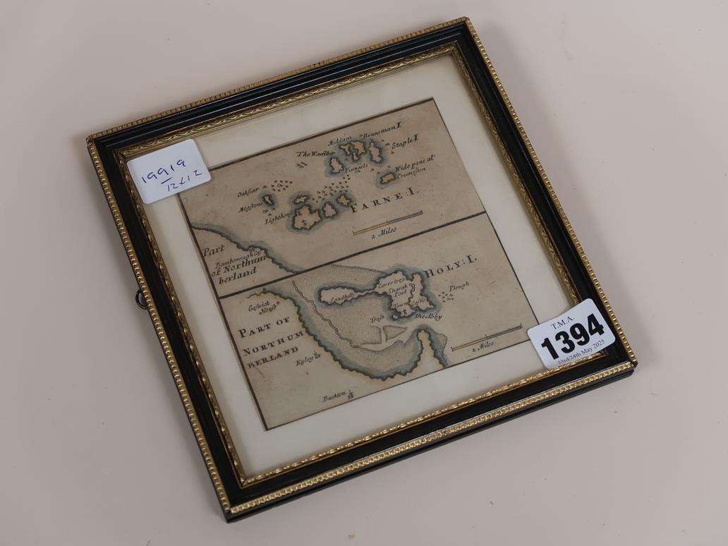 FRAMED PART MAP OF NORTHUMBERLAND, 12CM X 12CM