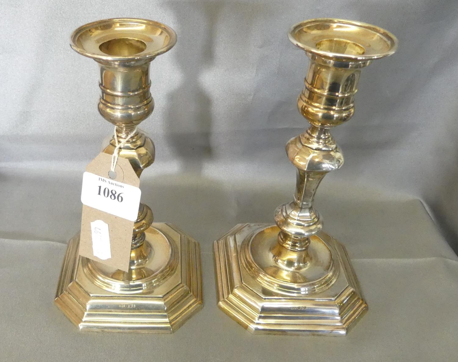Pair of Sheffield Silver Candlesticks, maker J.D & S, total (loaded) weight 847g, standing approx 19cm.