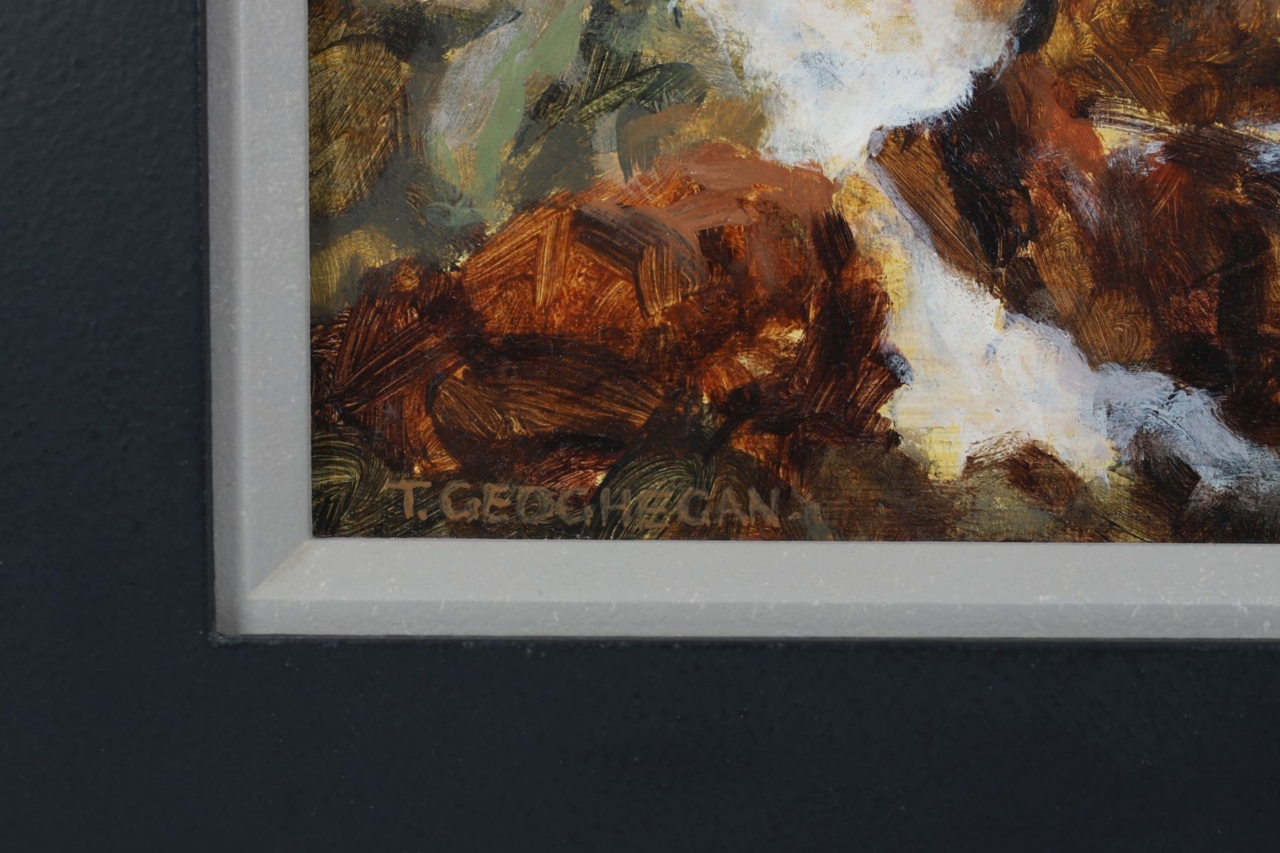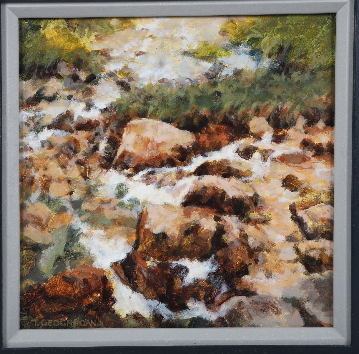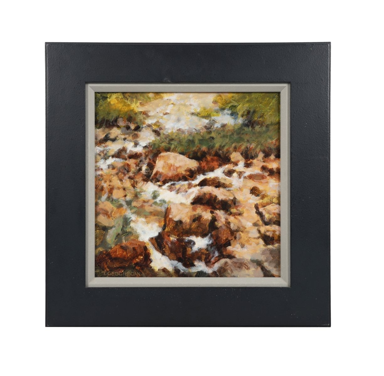 Oil on board depicting a rushing mountain stream over rocks, painted with Geoghegan’s lively brushwork and rich tonal contrasts. Signed lower left. Image: 33x 33 cm. Framed: 51 x 51 cm. PICTURES AND PRINTS Thursday 11th December 2025 19:43:36