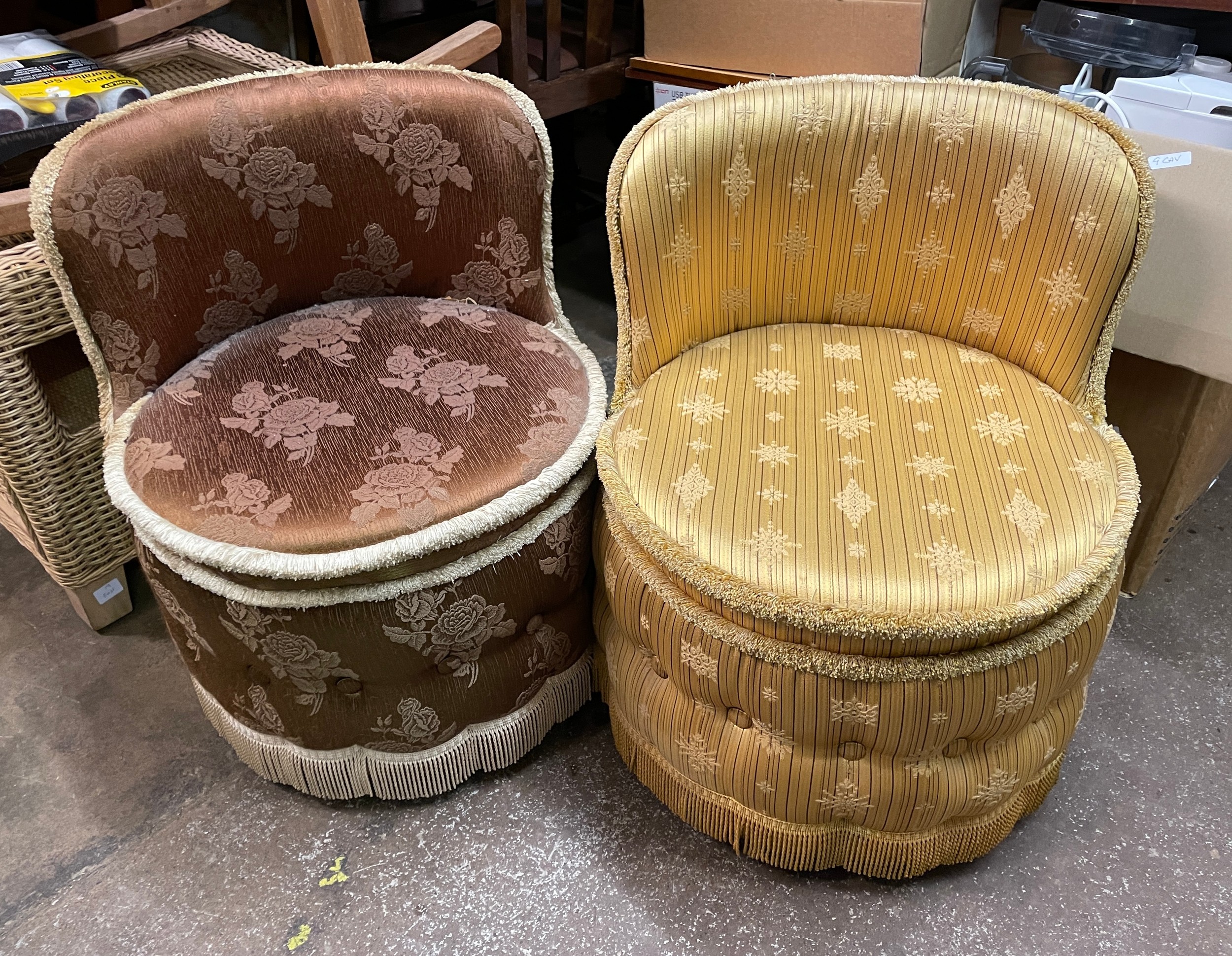 TWO CIRCULAR LOW BACKED BEDROOM CHAIRS