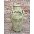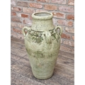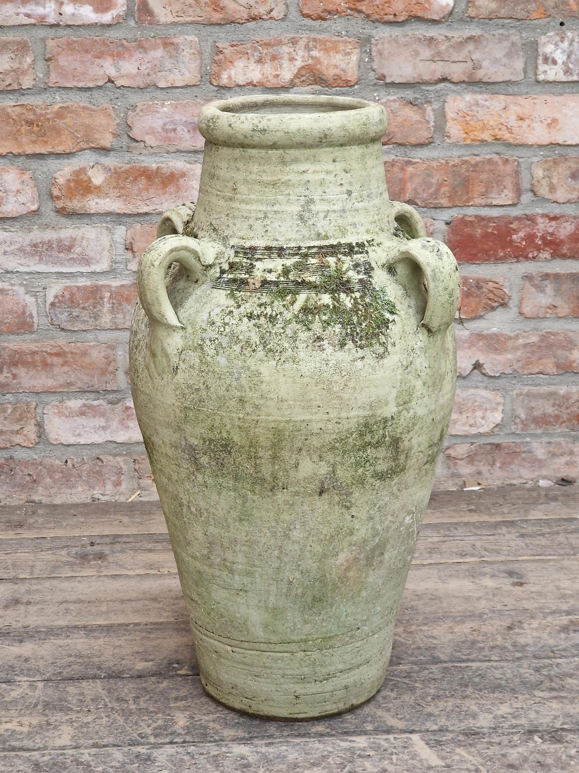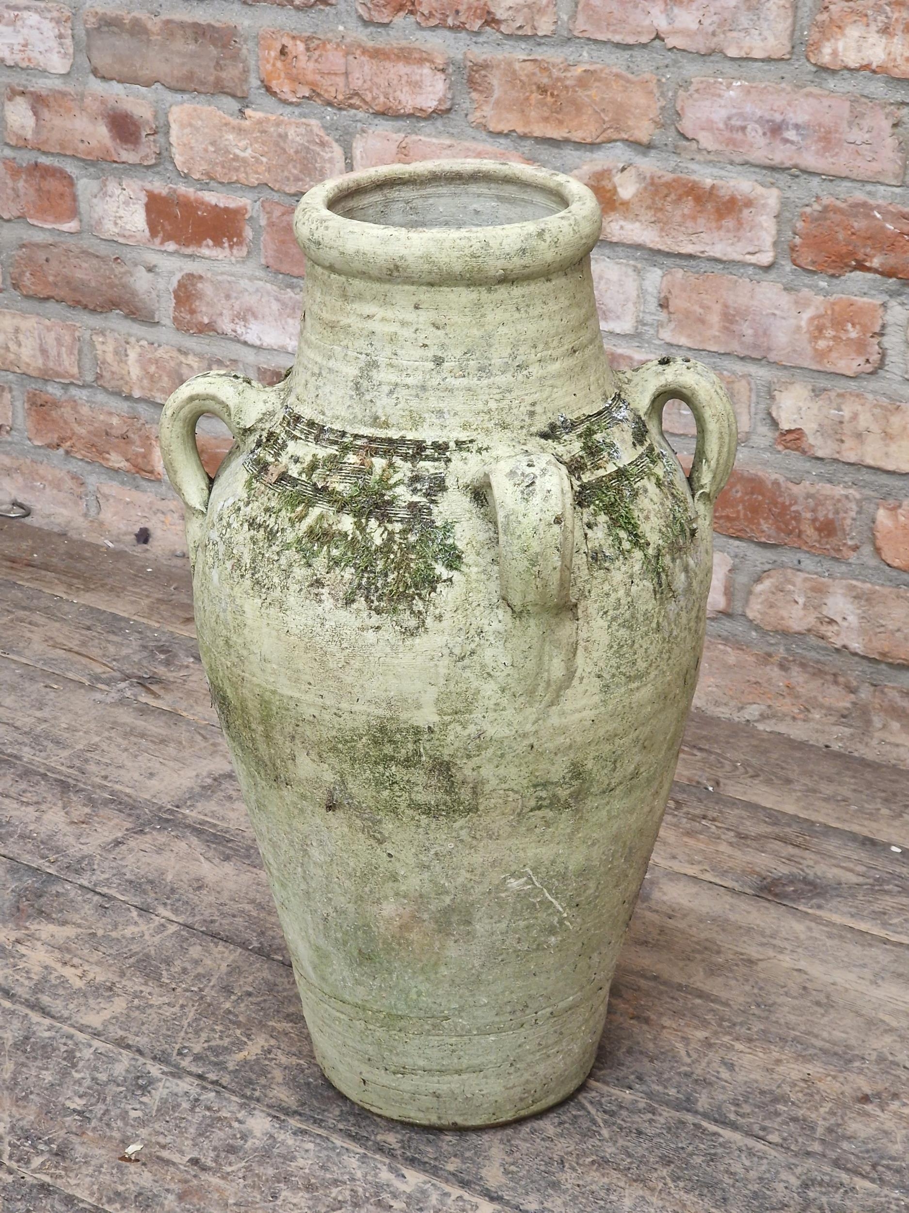 Weathered terracotta amphora urn with quadruped handles, H 68cm x W 34cm