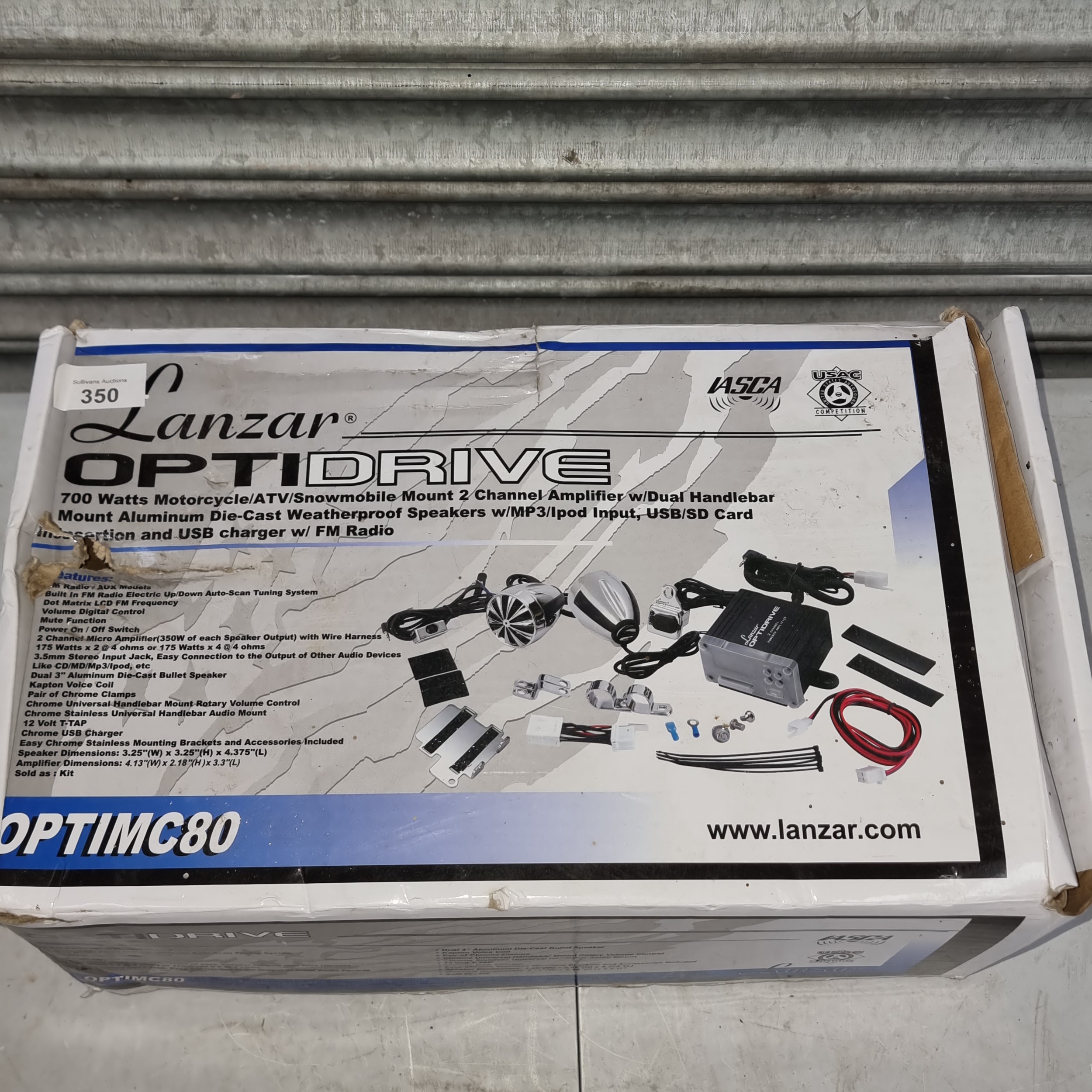 Lanzar Optidrive motorcycle 2 channel amplifier and waterproof set of handlebar speakers.