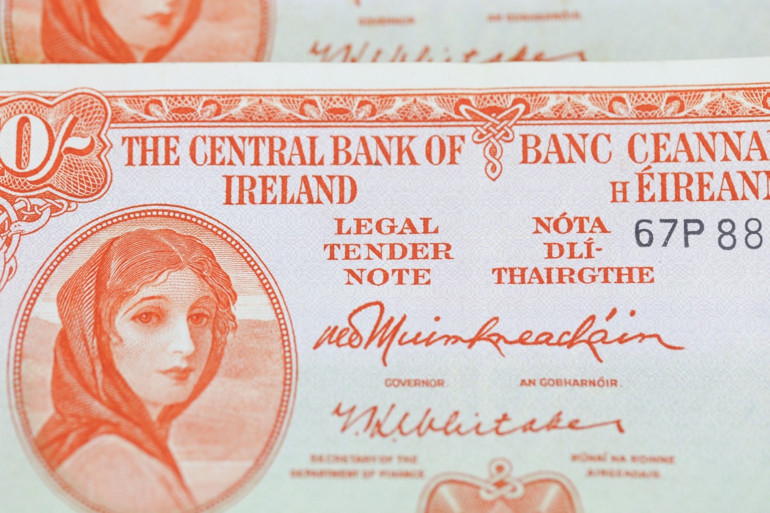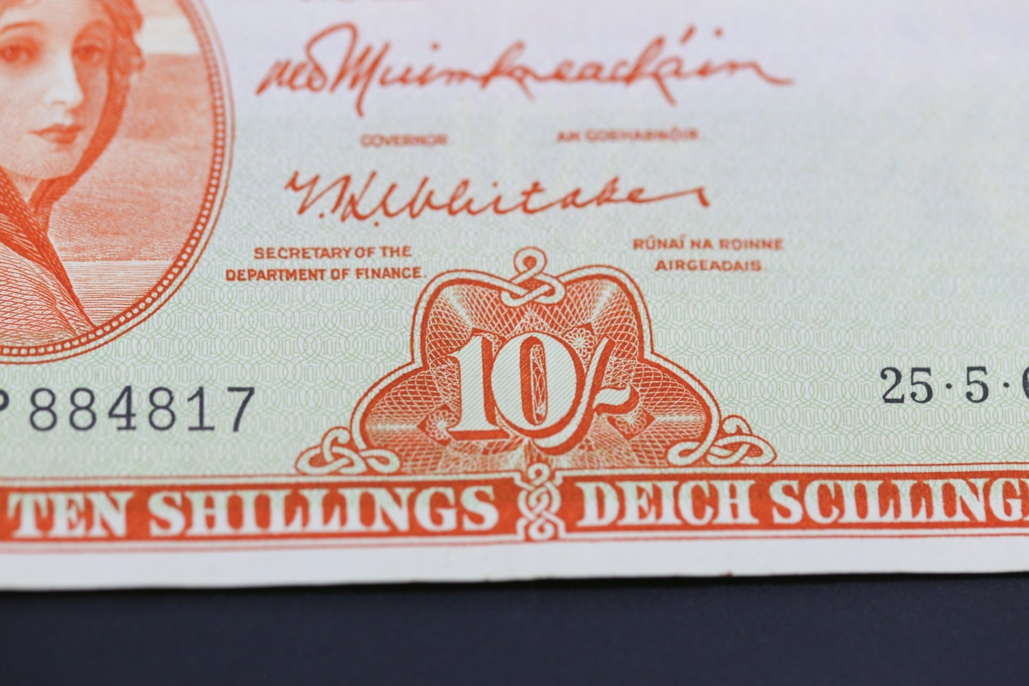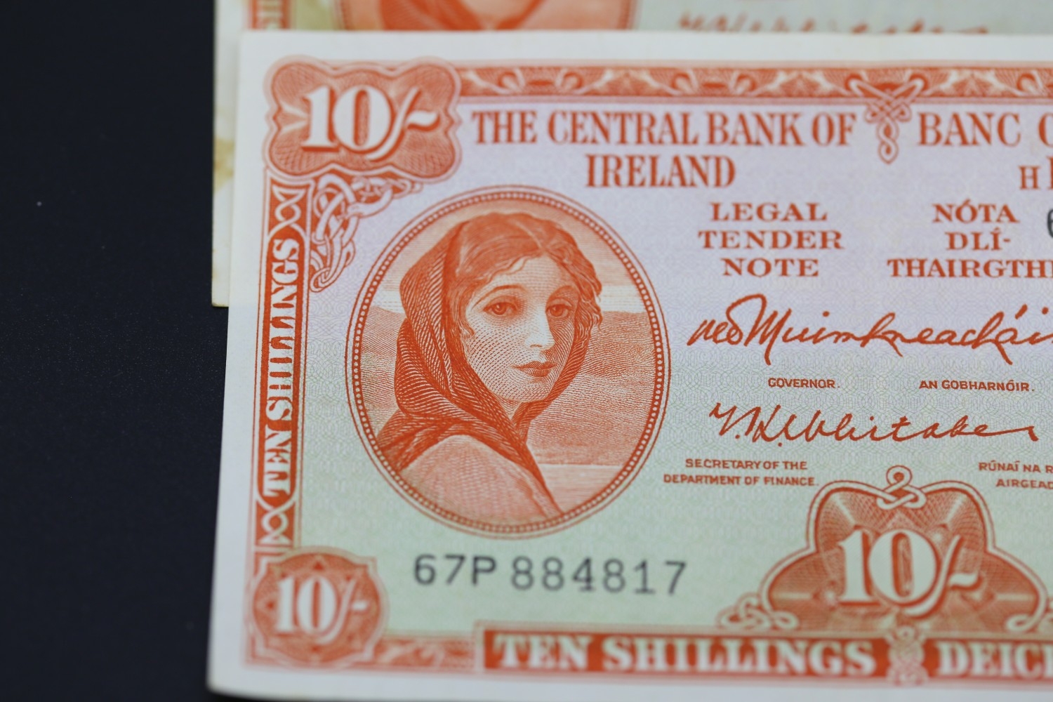 Four Ten Shilling Banknotes Issued by The Central Bank of Ireland 25-5-66, 1-10-60, 25-10-47, 6-6-68