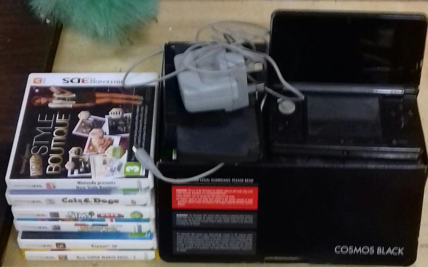 Boxed Nintendo 3DS with holder, charger and 6 x games - working order