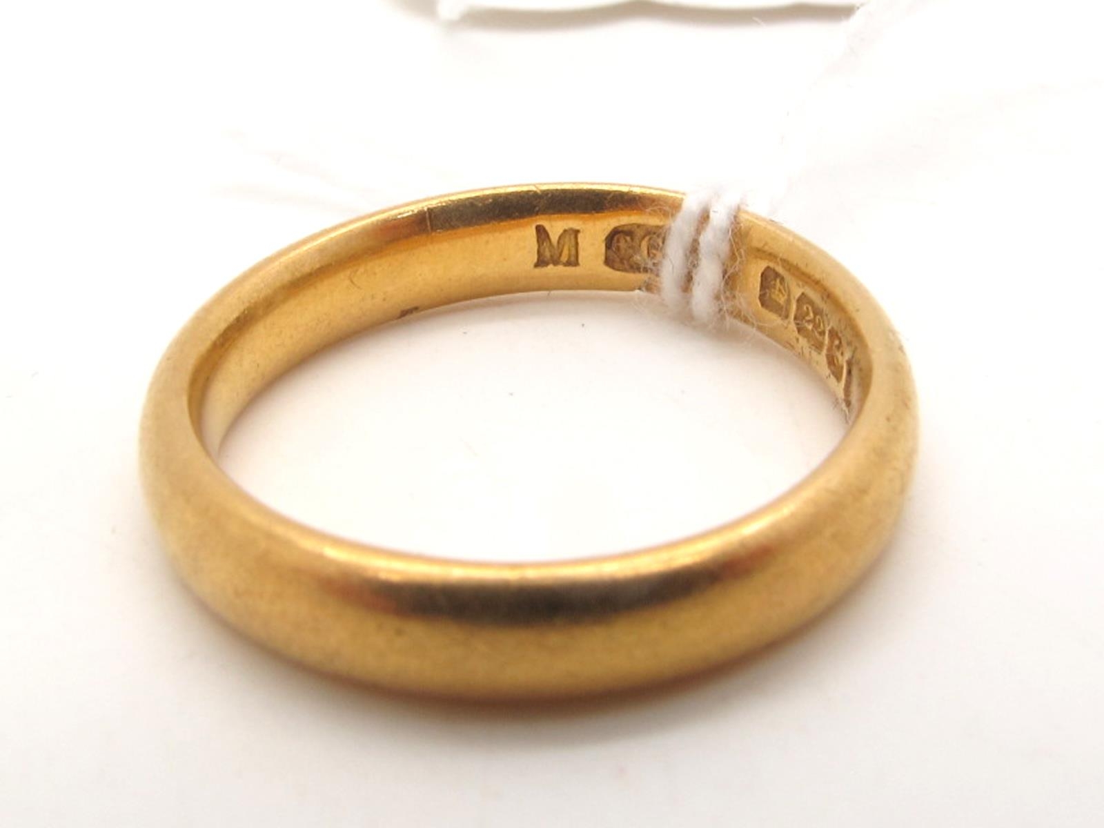 A 22ct Gold Plain Wedding Band, (finger size L) (5grams).
