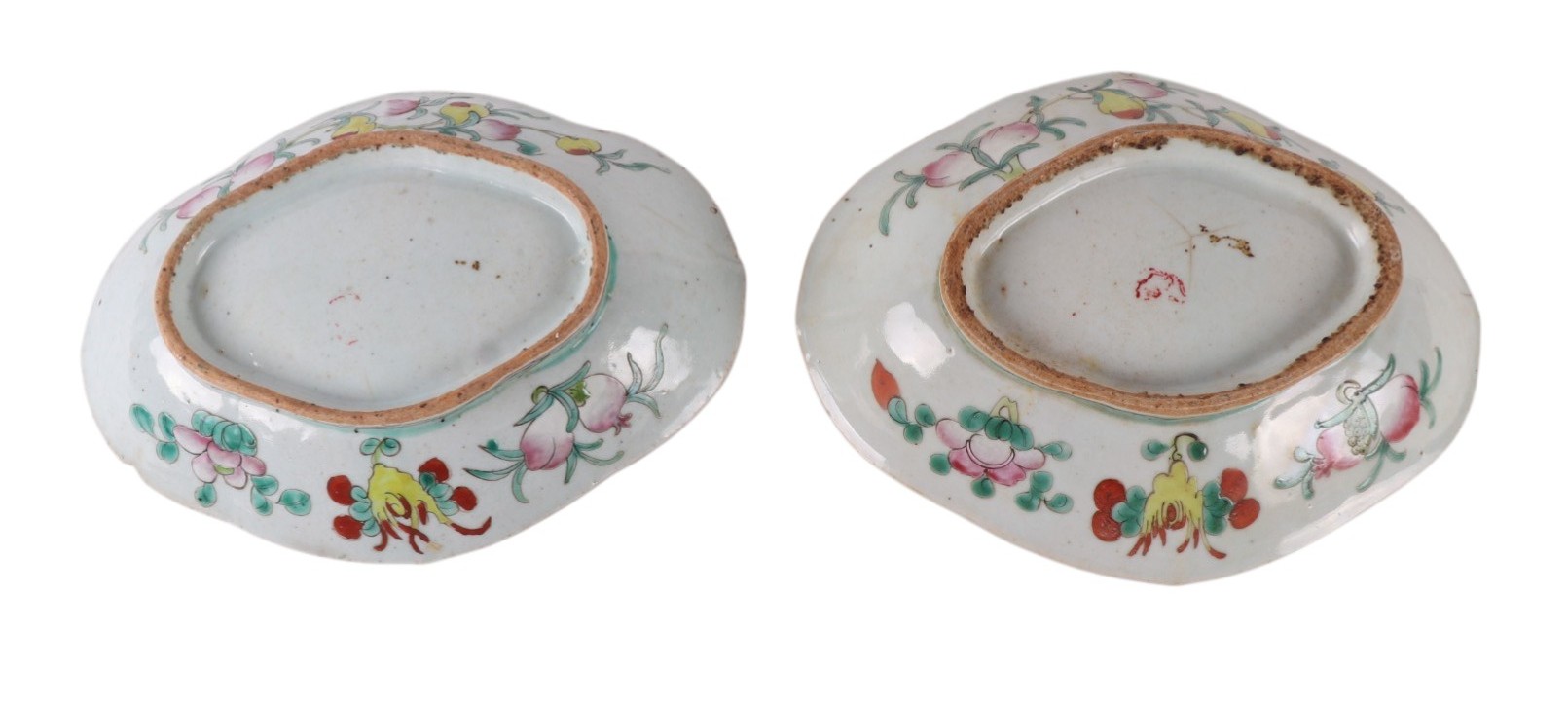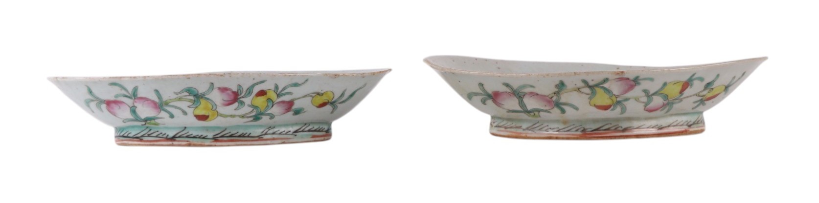 A pair of Chinese famille rose oval footed bowls, each 26cm wide (2).