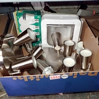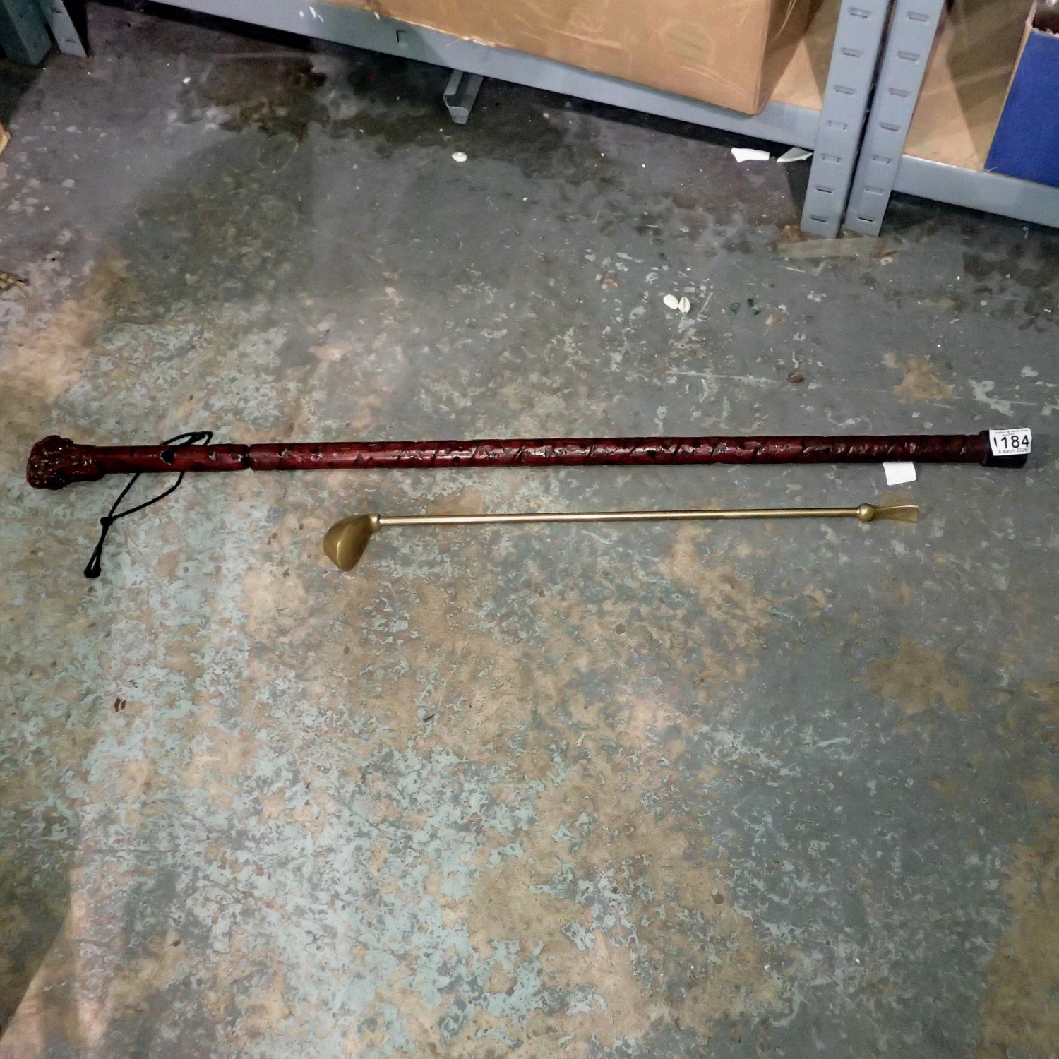 Carved walking stick and brass miniature golf club. Not available for in-house P&P