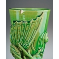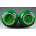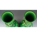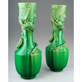 A pair of Japanese Meiji period Awaji dragon vases of baluster form, green glazed and decorated in high relief, s.d., height 39.5cm approx. (2)