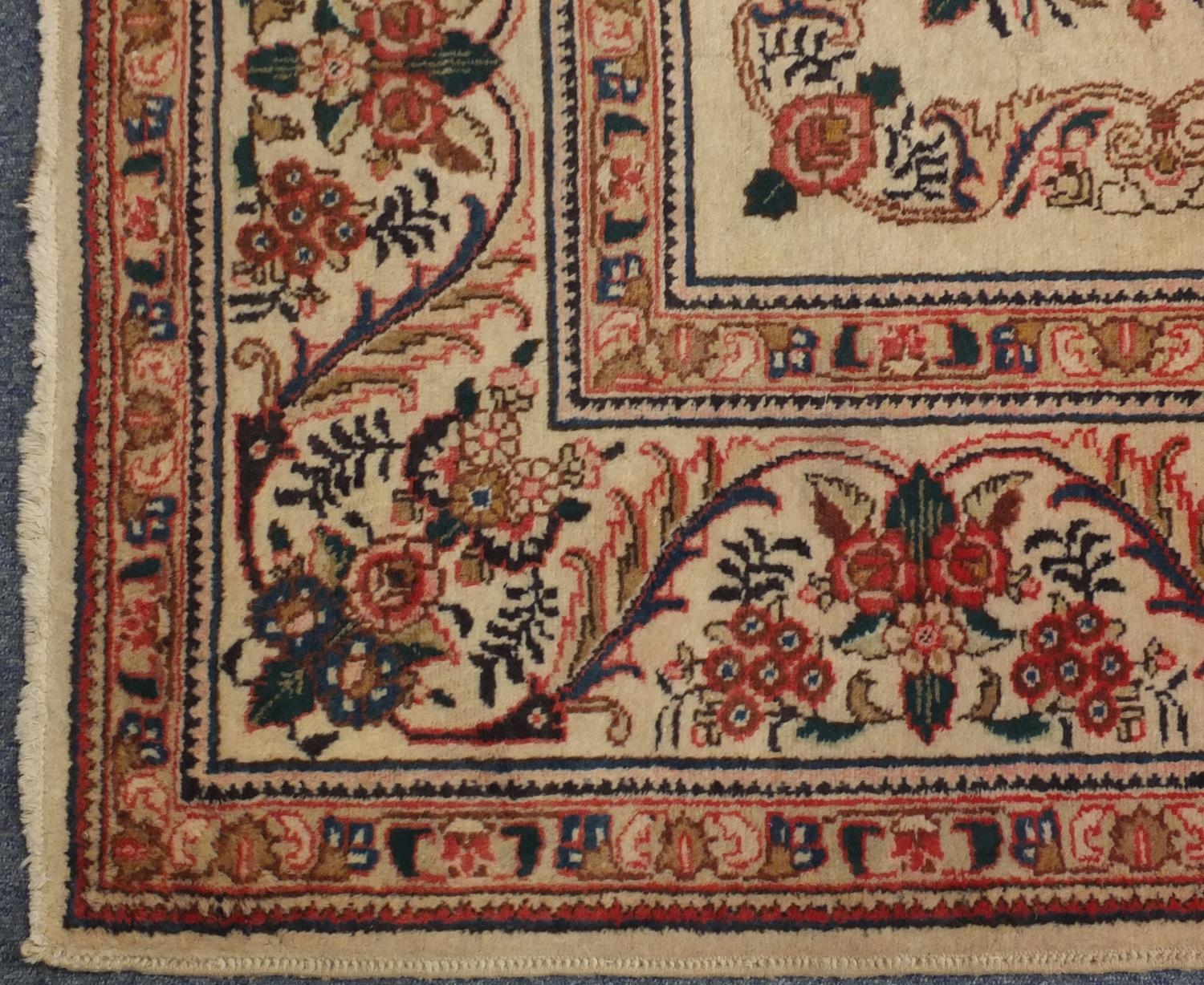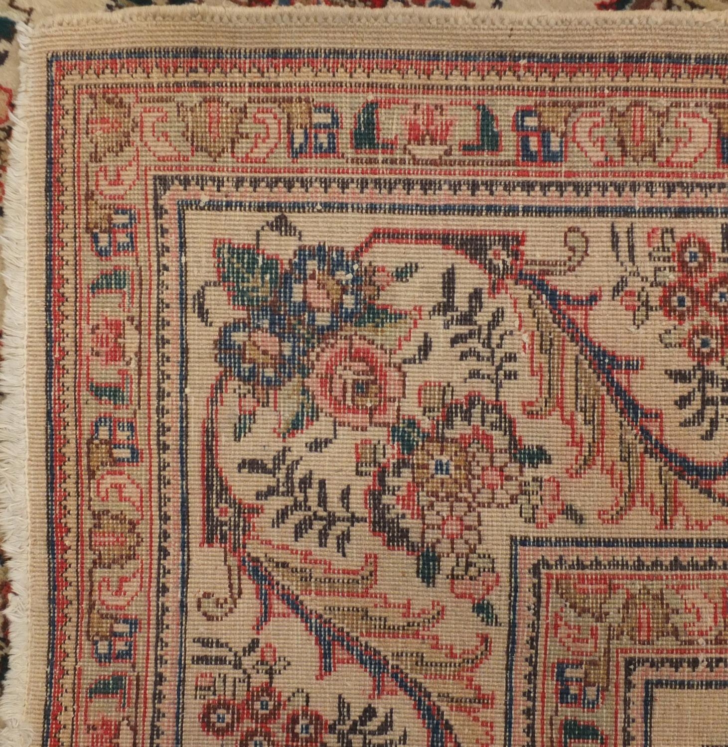 Rectangular Persian Tabriz carpet, the central field having foliate motifs onto an ivory ground within corresponding borders, 332cm x 260cm