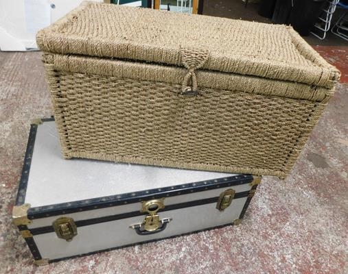 2 boxes - 1 wicker bedding box + aluminium flight case