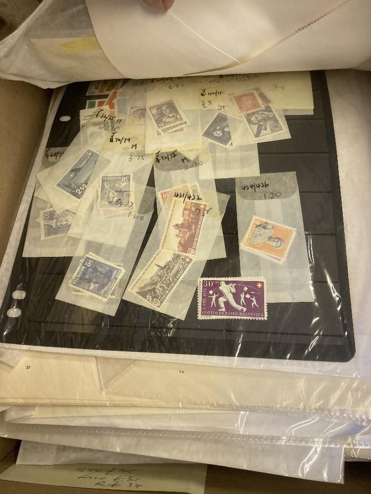 STAMPS Mixed box of album pages and old auction lots, plus some GB Presentation Packs, China on pages, Sudan in sheets, Malta. Massive potential here