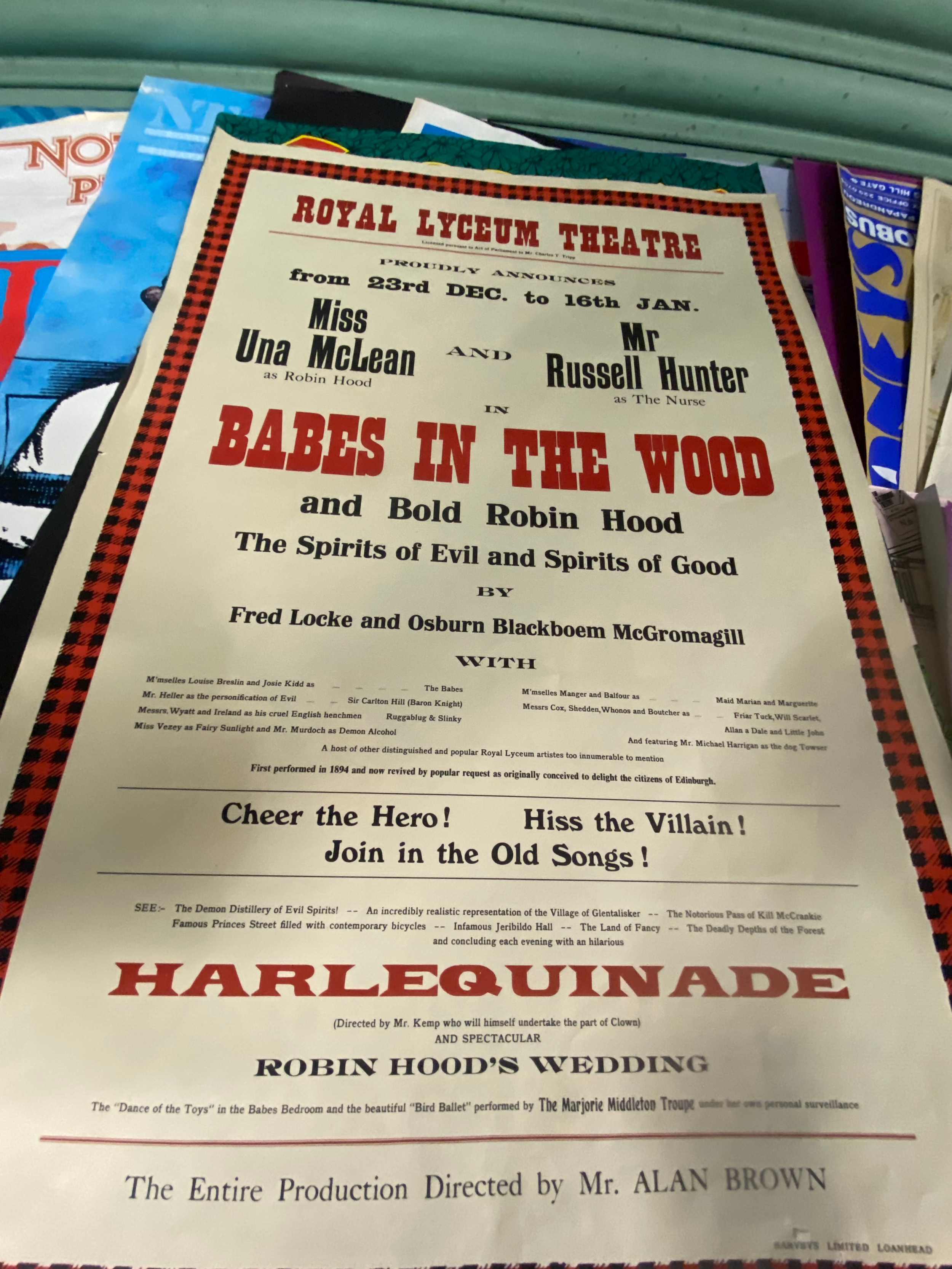 A Large Collection of theatrical posters including Oliver, Babes in the wood, Maps, Sleeping Beauty, Trumpets and & Drums