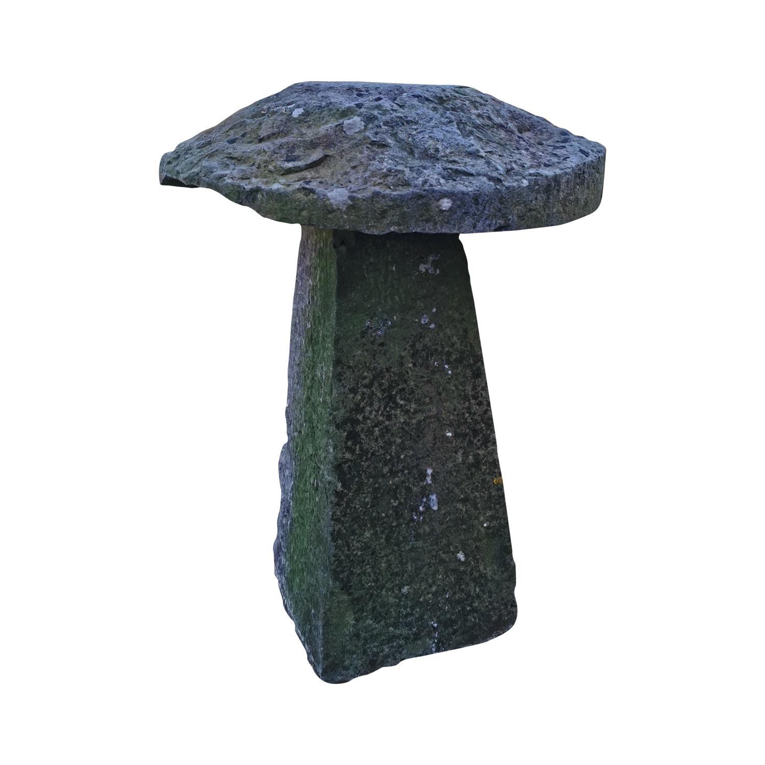 Pair of 18th C. limestone saddle stones {72 cm H x 54 cm Dia.}.