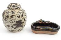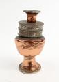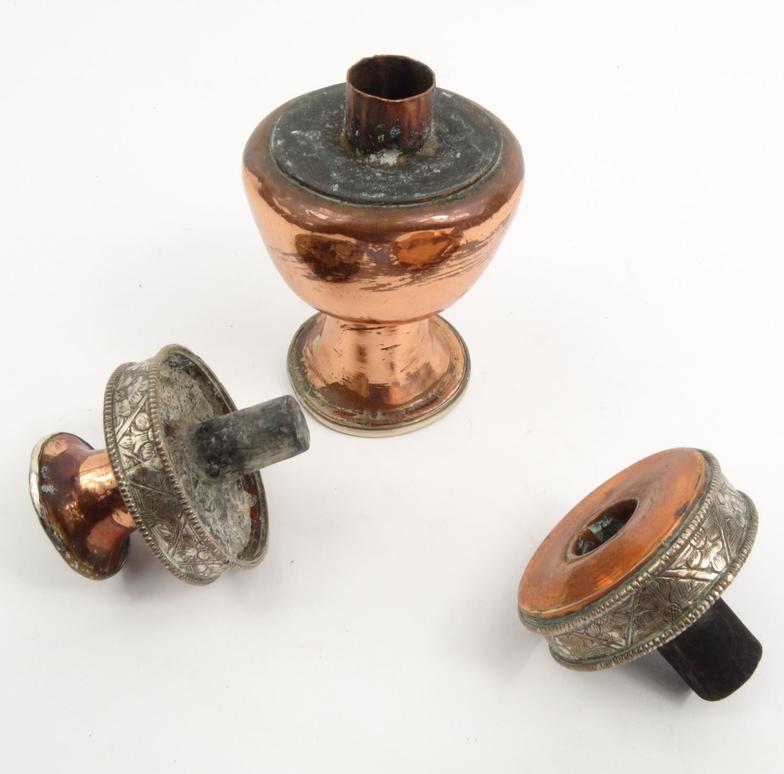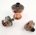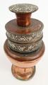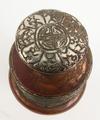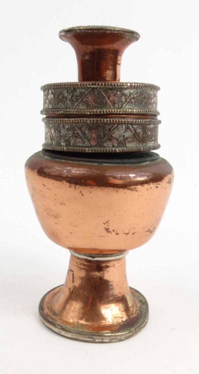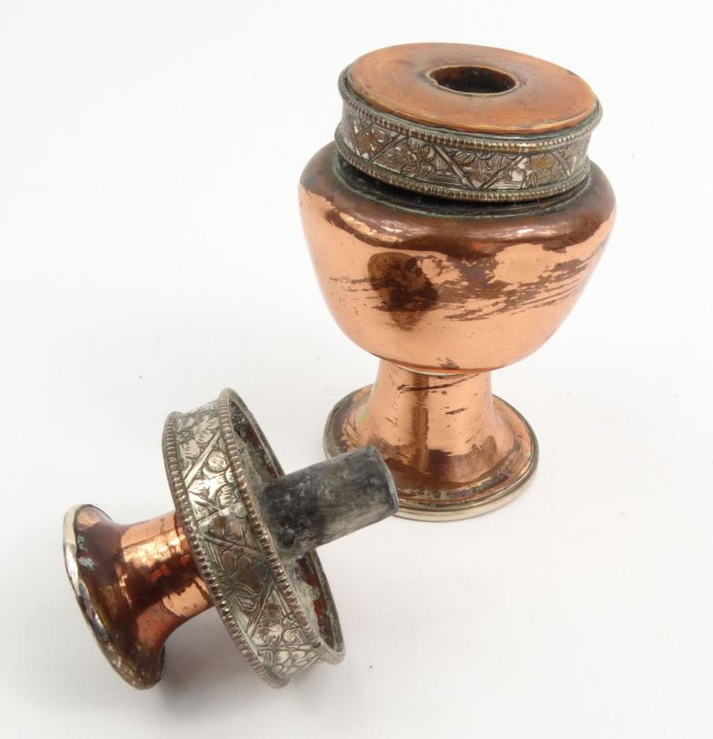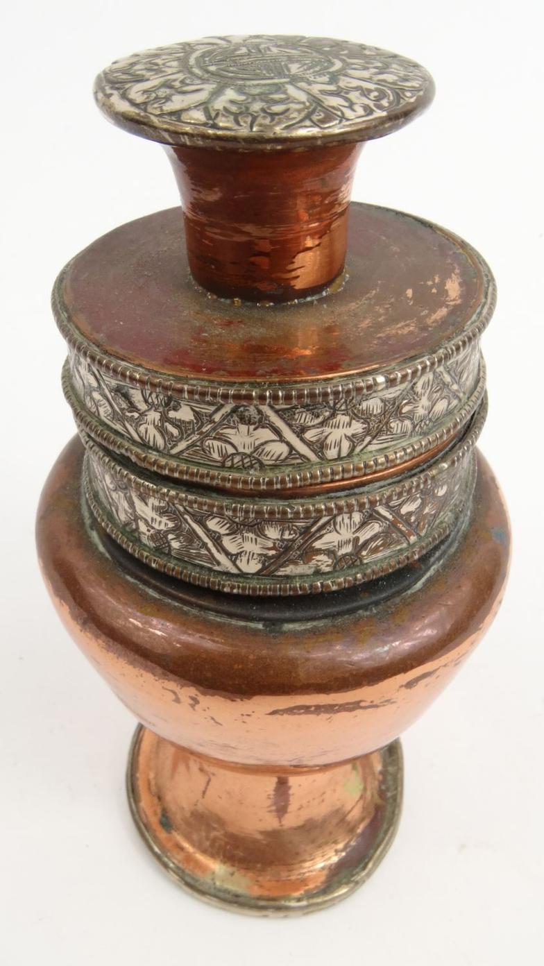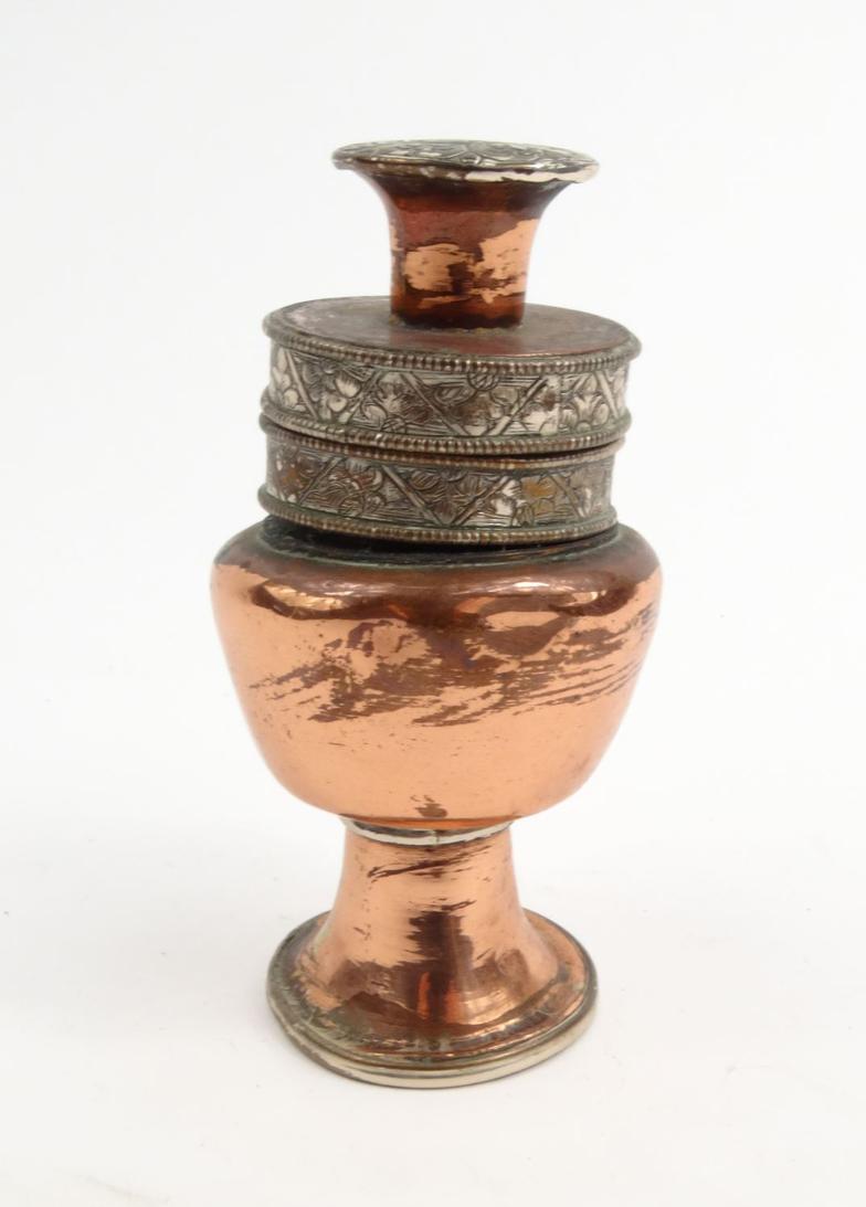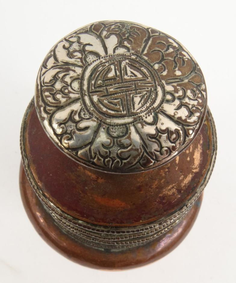 Tibetan copper and silver metal inkwell with floral design, 12cm high