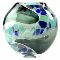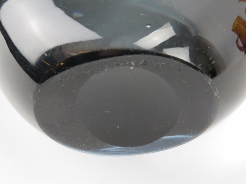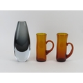 A Stromberg submerged glass vase and two amber beaker cups possibly by Whitefriars. (3 items) Vase: 24.8 cm