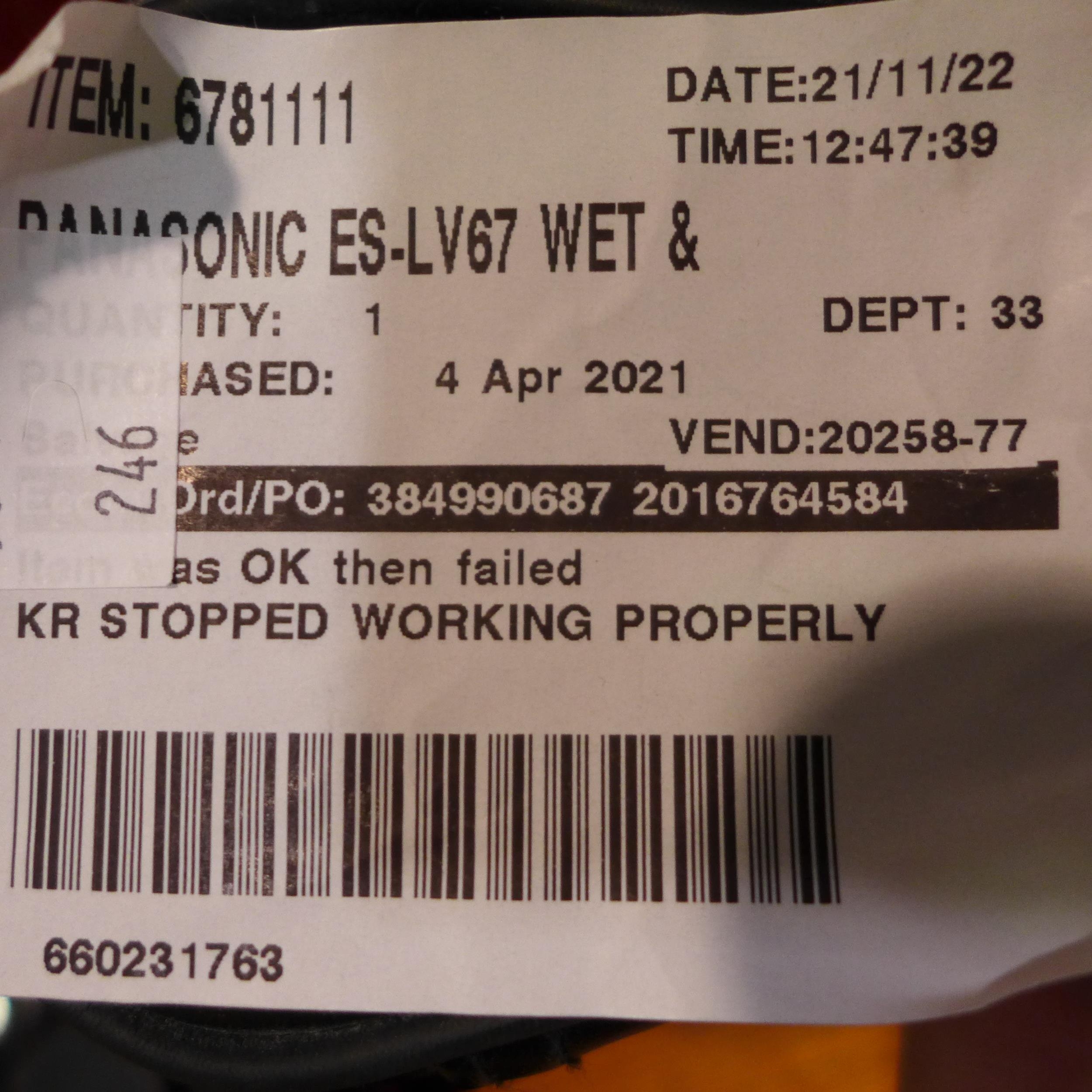 Panasonic Es-Lv67 Wet & Dry 5-Blade Shaver , Original Rrp £158.33 + Vat(244-247) * This Lot Is Subject To Vat