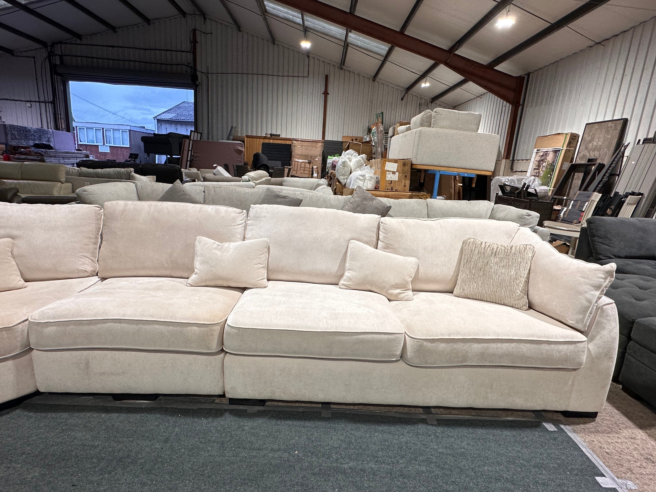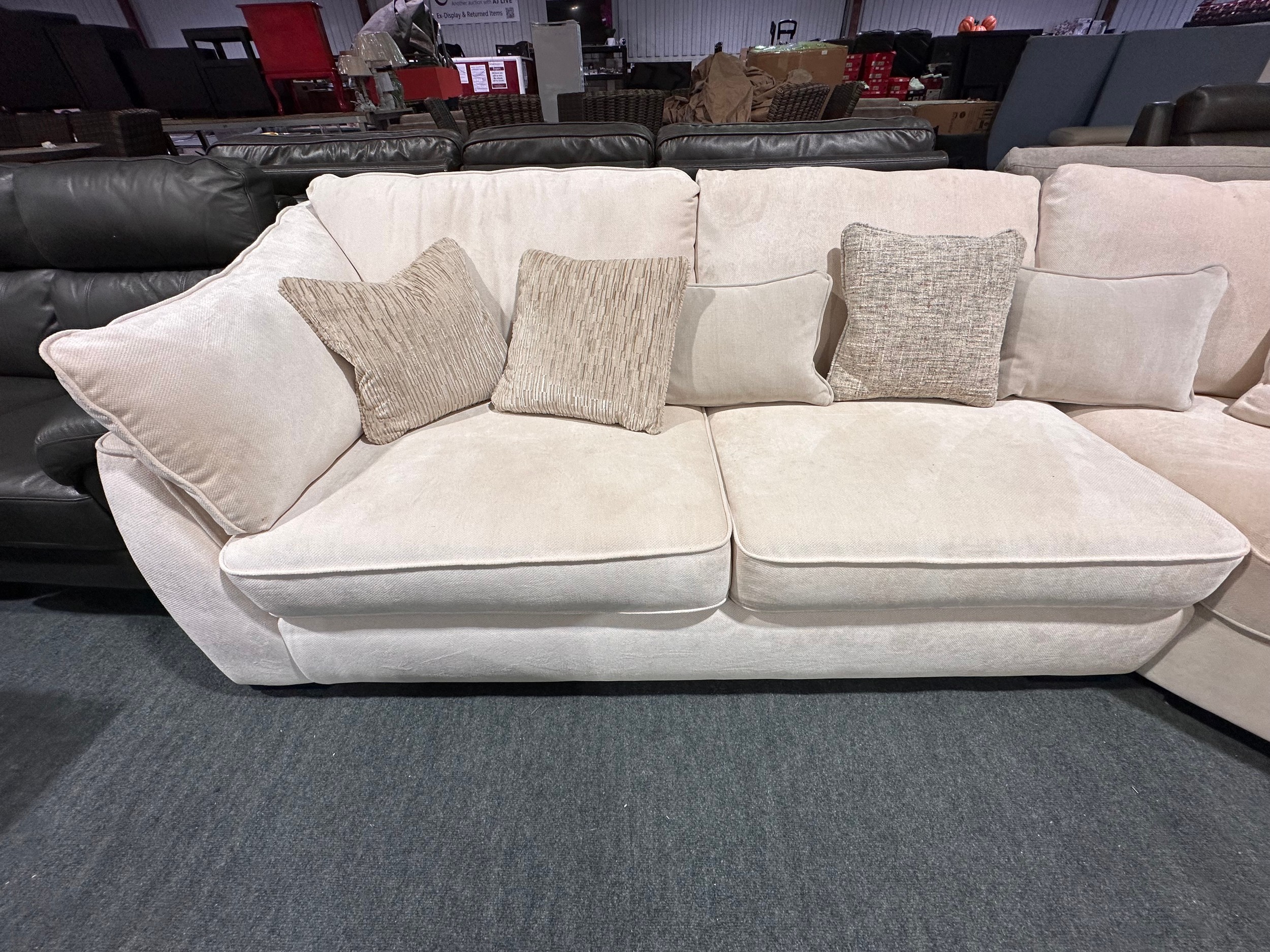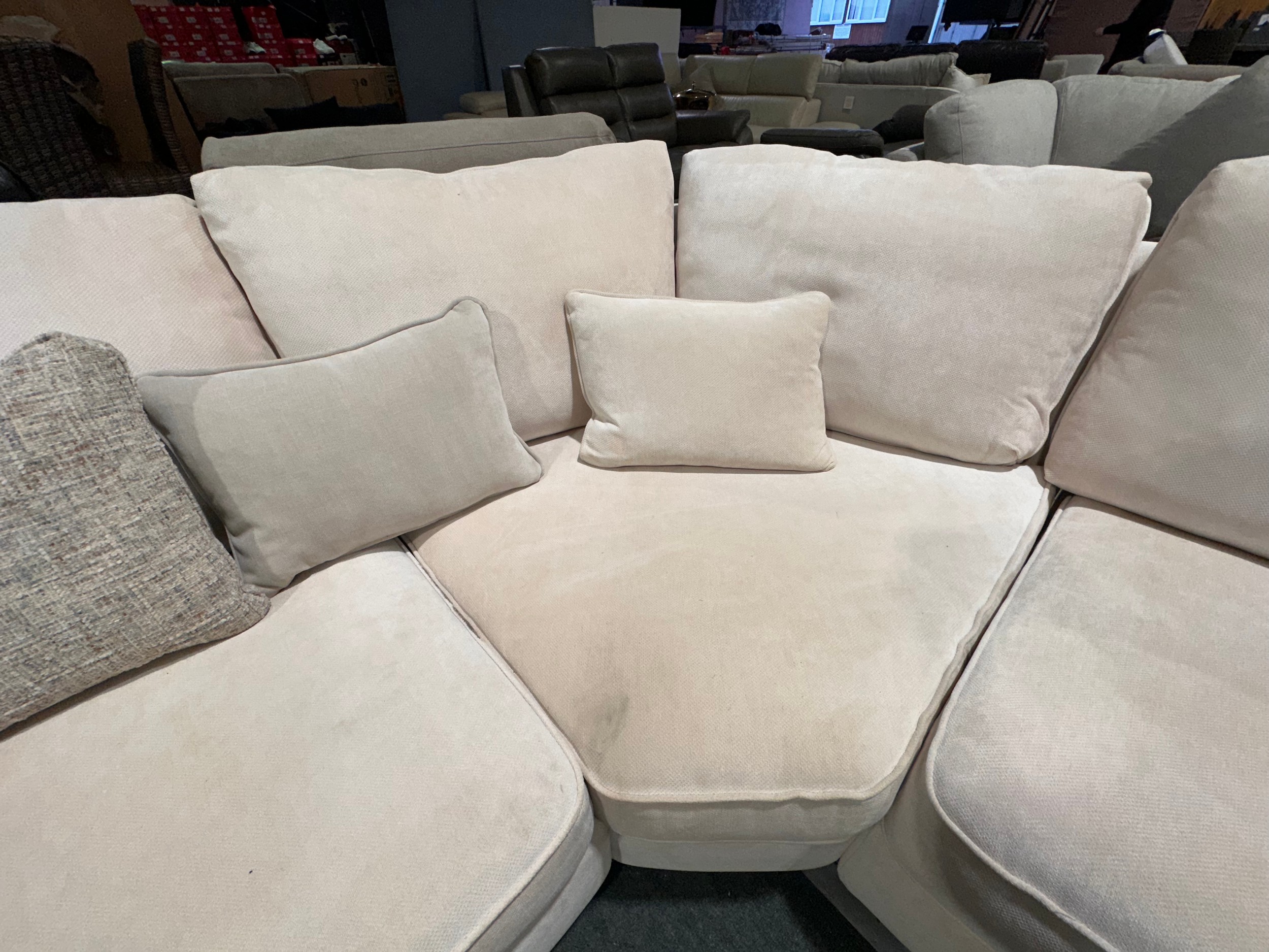 An ivory pile velvet corner sofa (transit marked)