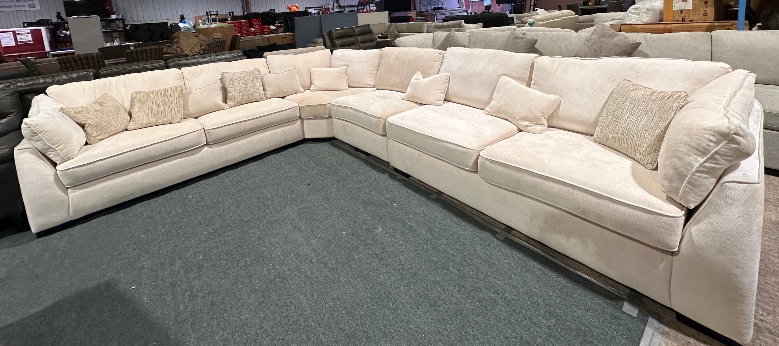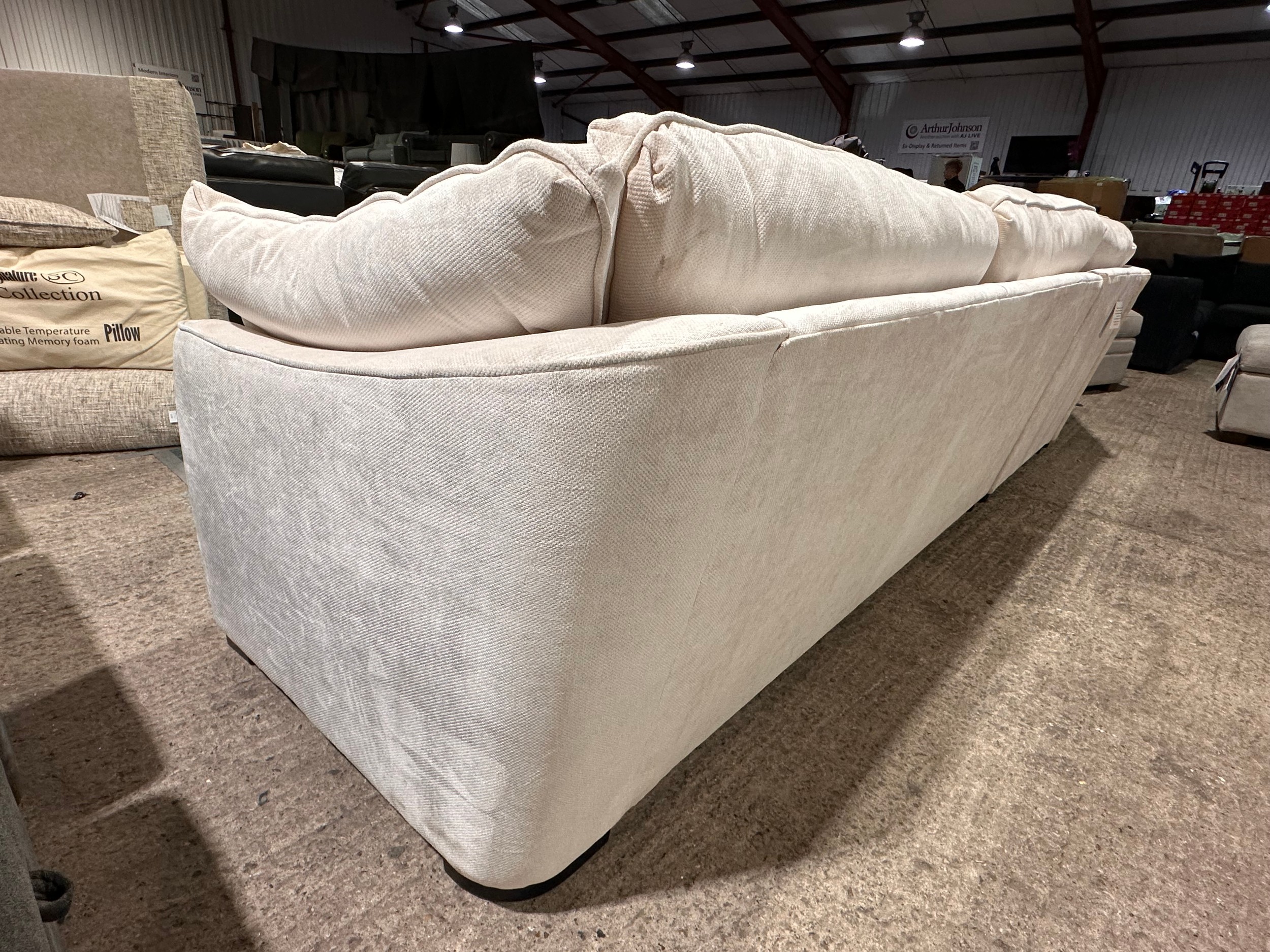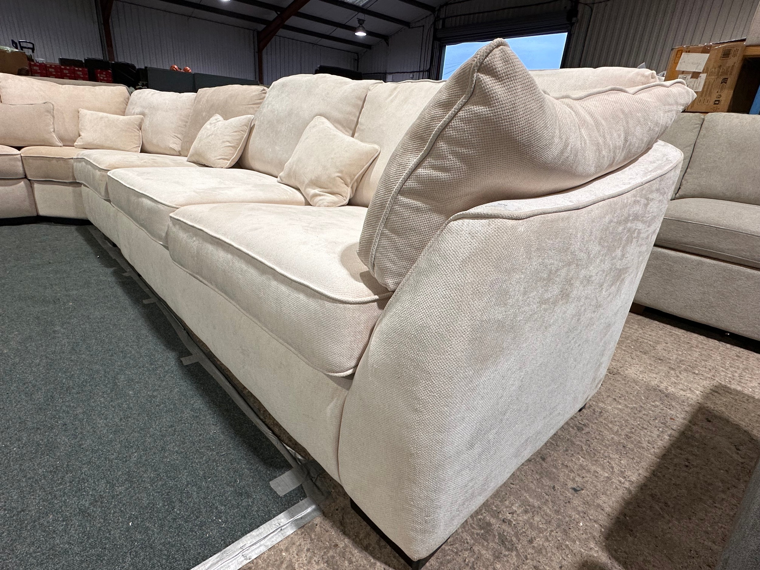 An ivory pile velvet corner sofa (transit marked)