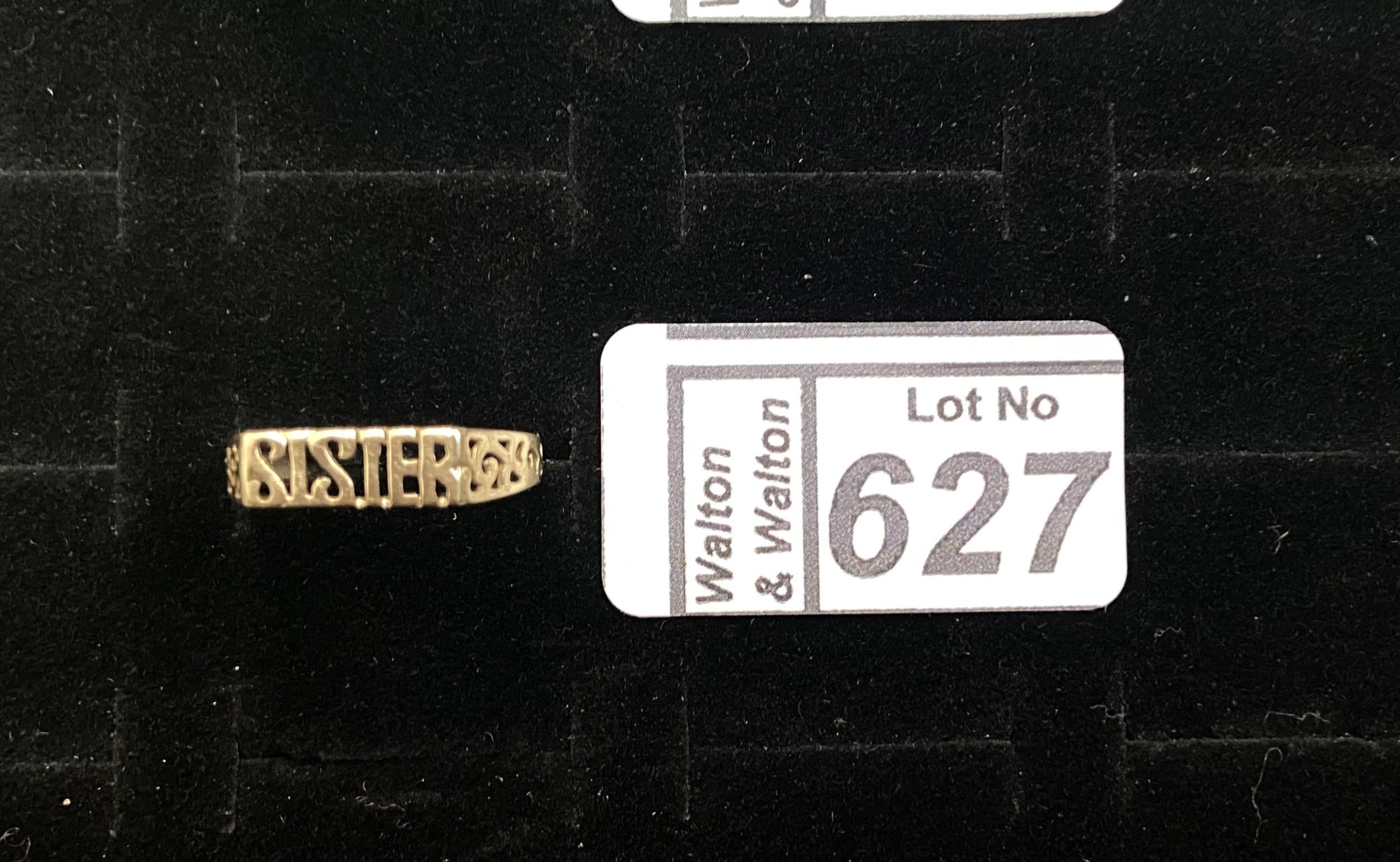 9ct Gold 'Sister' ring, size P - Only 10% buyer's premium
