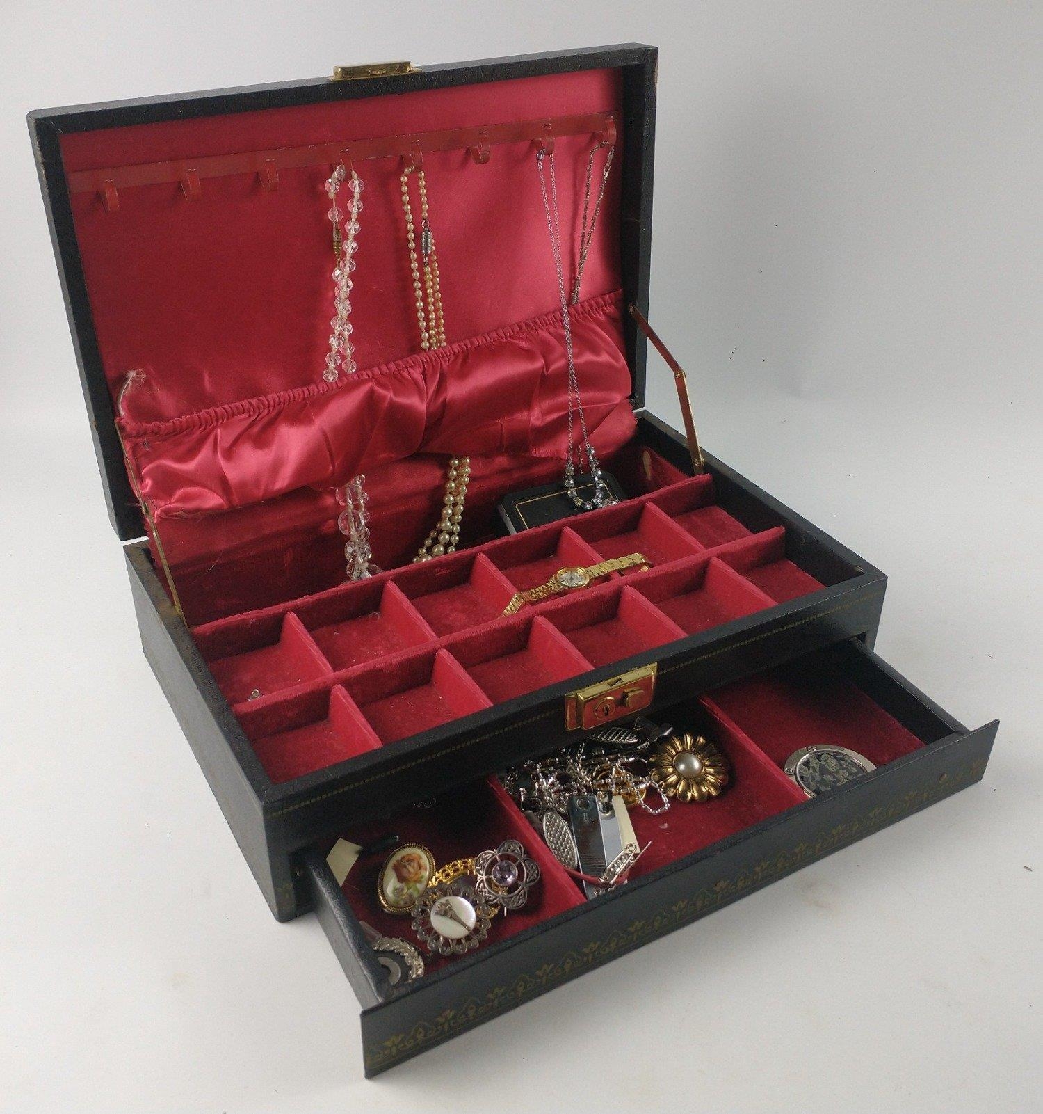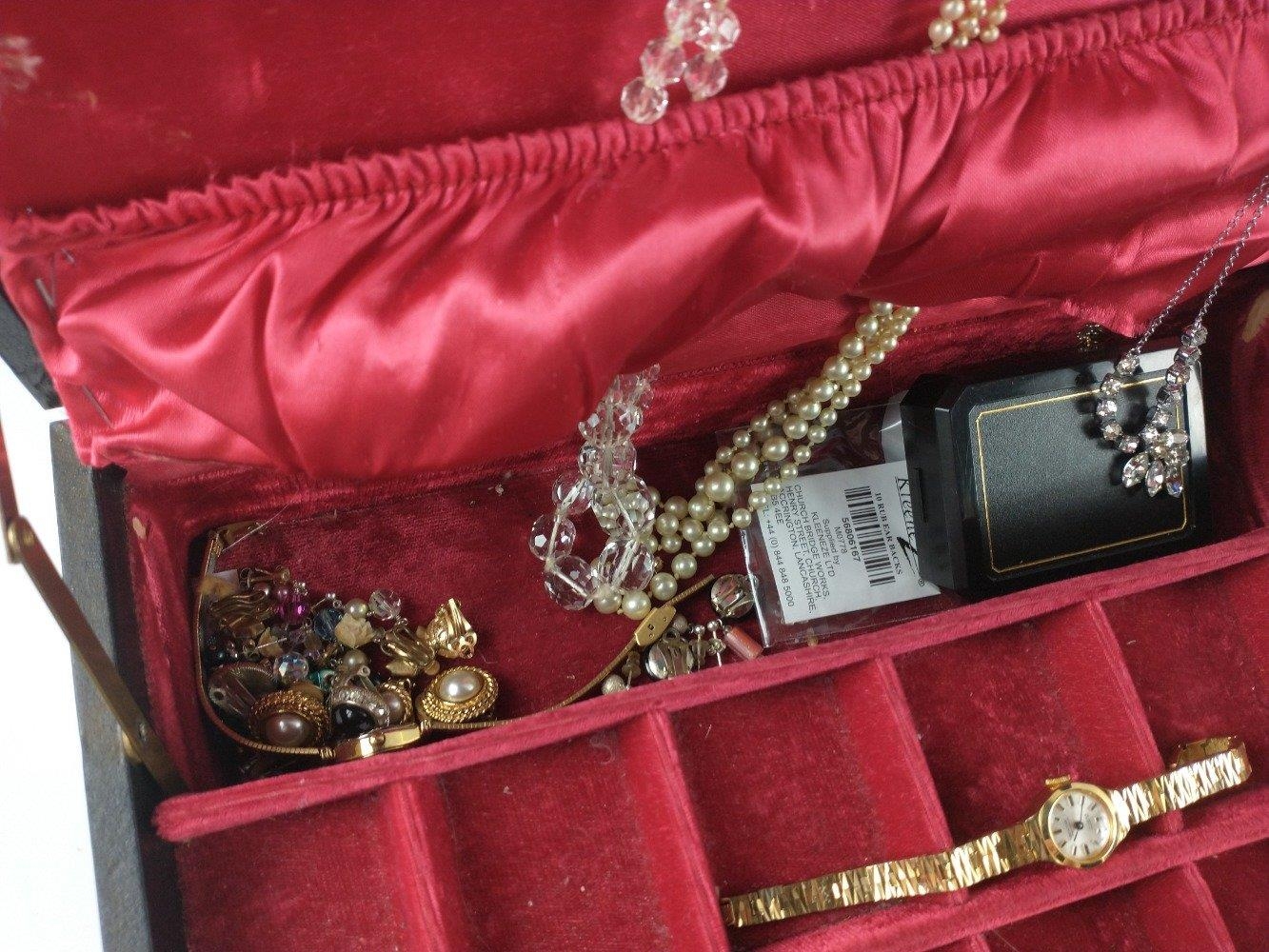 Jewellery box and wrist watches and costume jewellery contents