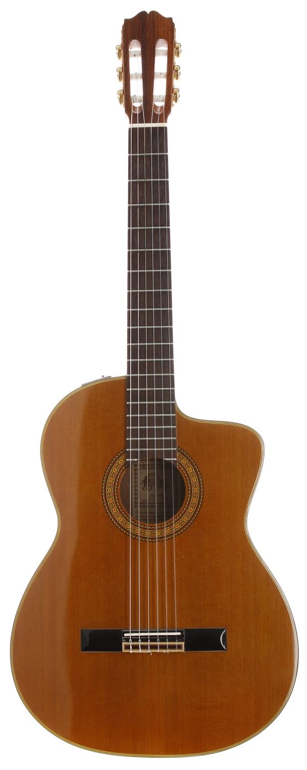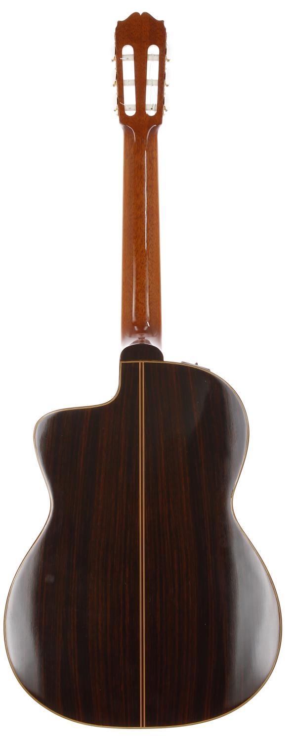1983 Takamine EC132SC electro-acoustic nylon string guitar, made in Japan; Back and sides: Indian rosewood, a few light surface marks; Top: natural cedar, minor marks; Neck: mahogany; Fretboard: rosewood; Frets: good; Hardware: good; Case: original fitted hard case; Overall condition: good