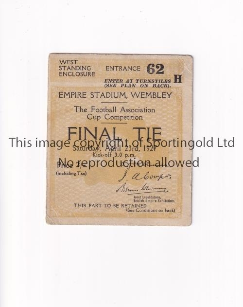 ARSENAL / FA CUP 1927 Ticket for the FA Cup Final tie v Cardiff City at Empire Stadium 23/4/1927. Generally good