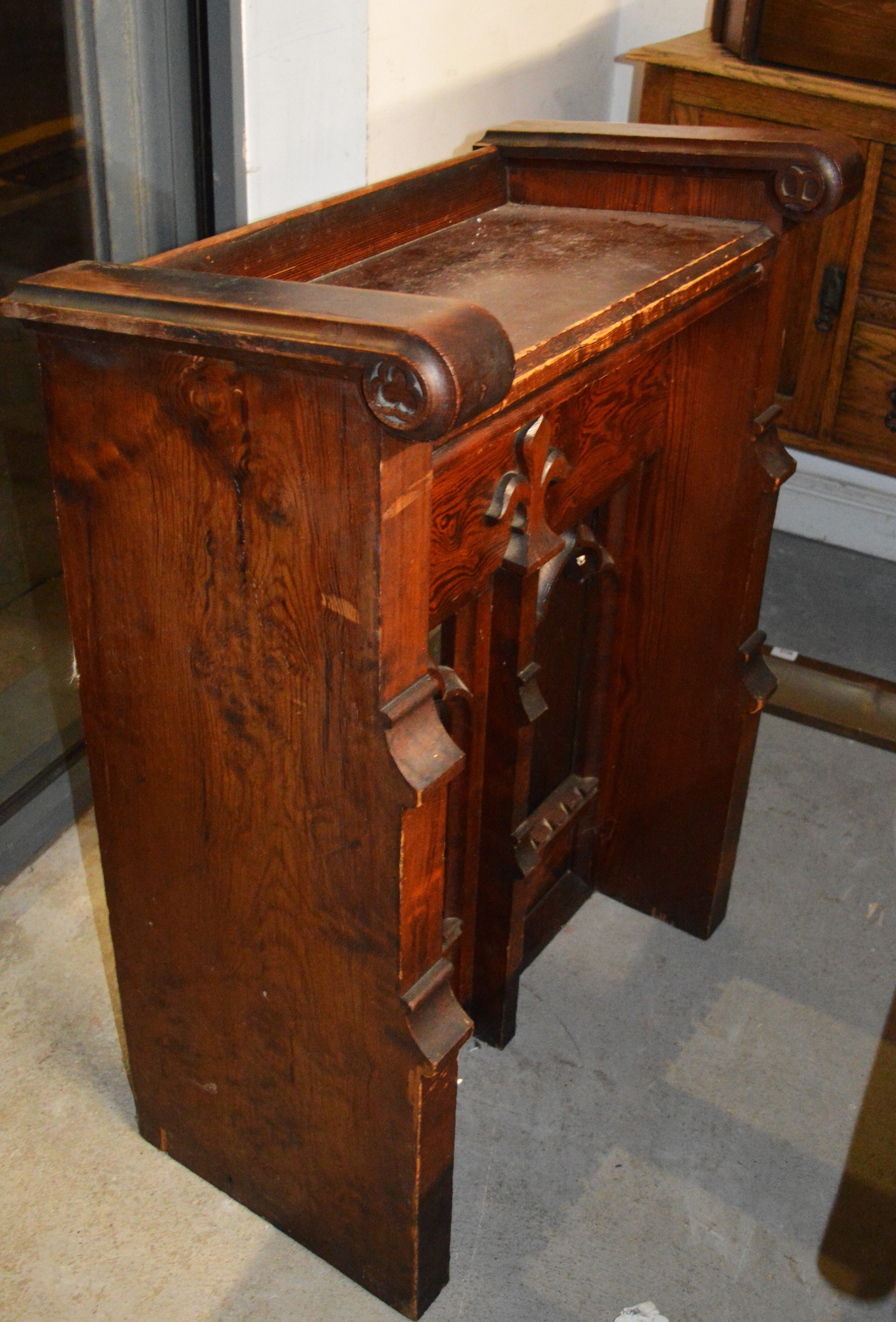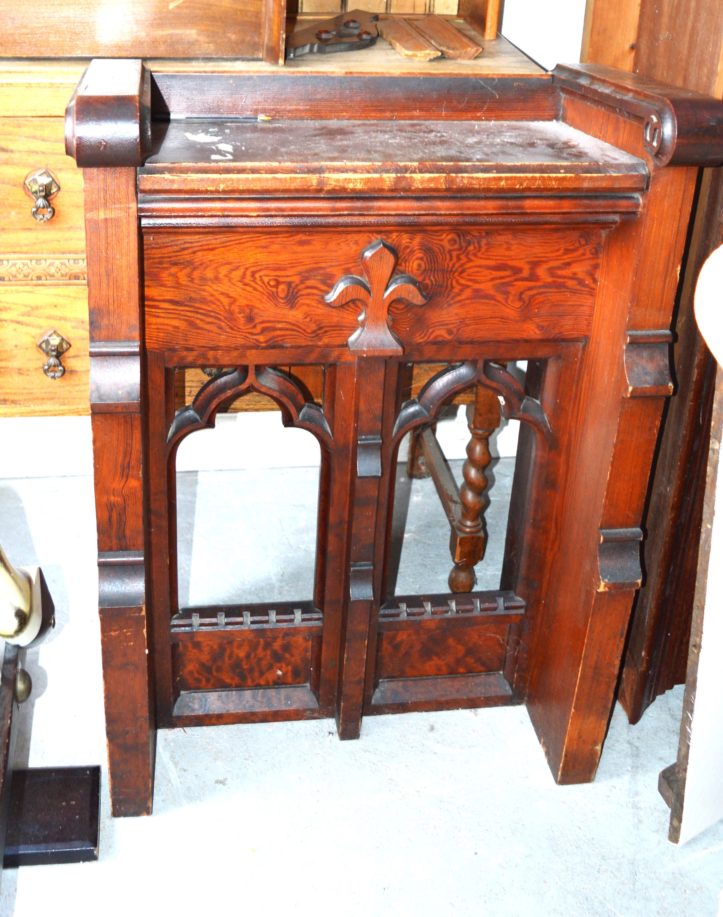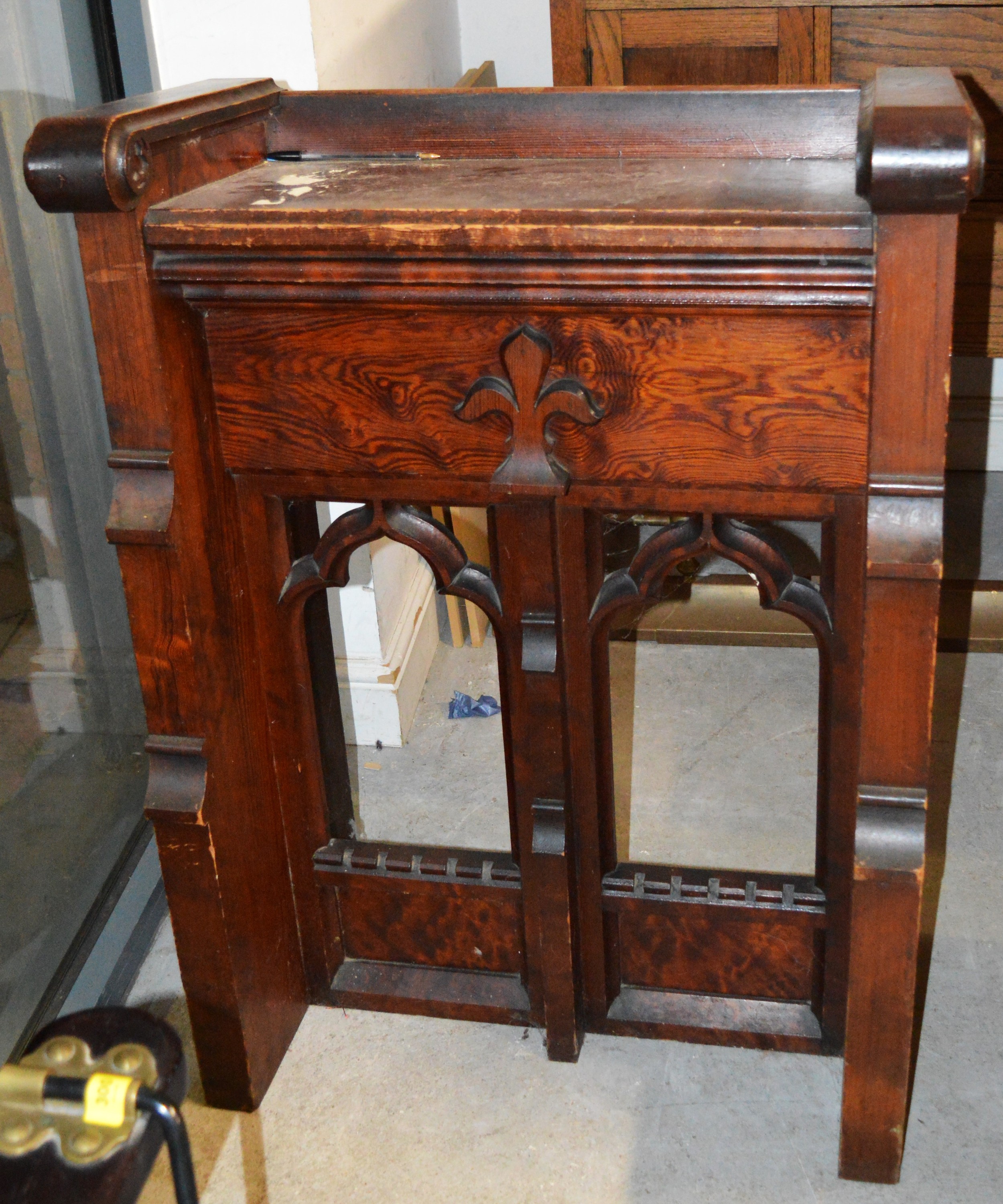 A Polished Pitch Pine Church Lectern having Fleur-de-Lys and Three-Leaf Clover (Faith, Hope and Love) Carving Detail