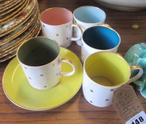 FIVE SUSIE COOPER COFFEE CANS AND A SAUCER