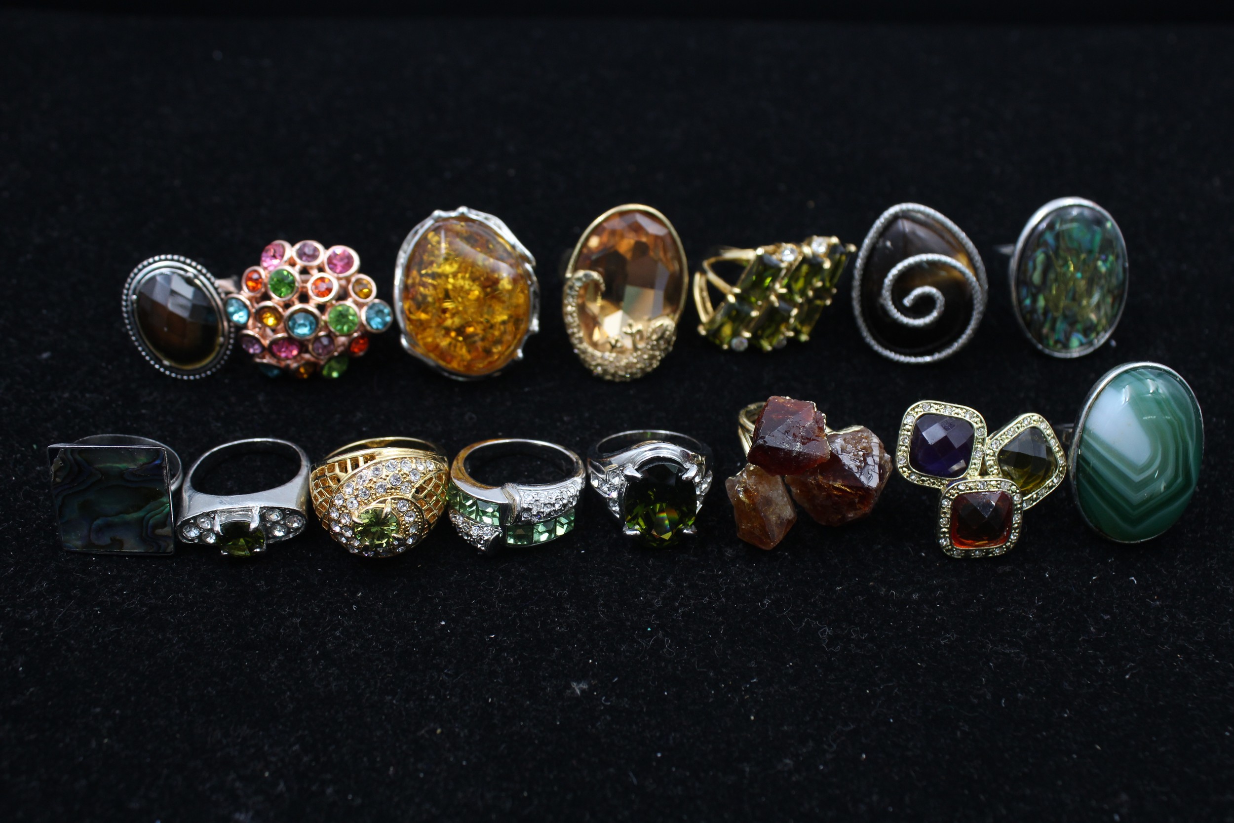 15 x Vintage and Retro RINGS inc. Gemstone, Rhinestone, MOP, Statement