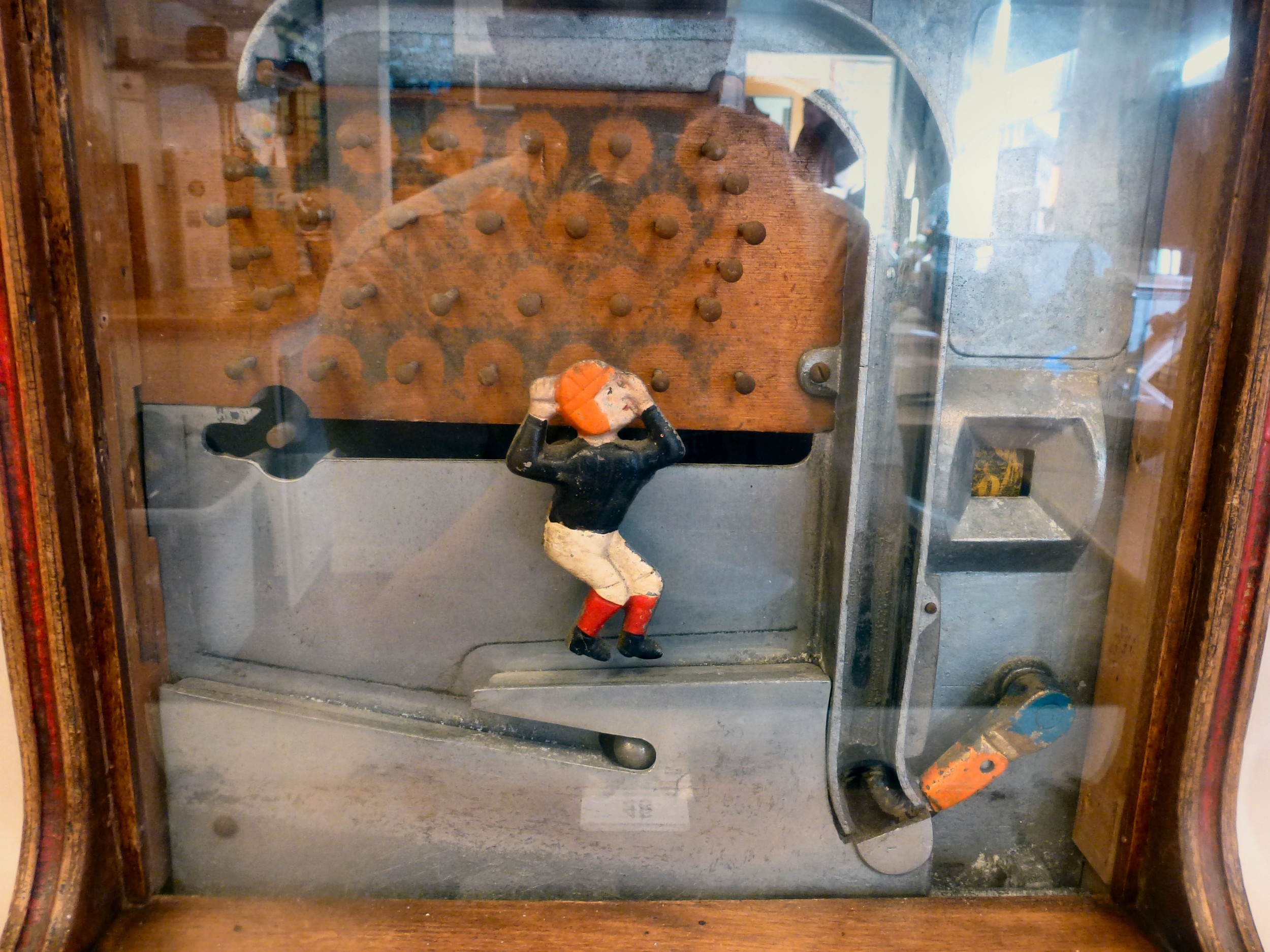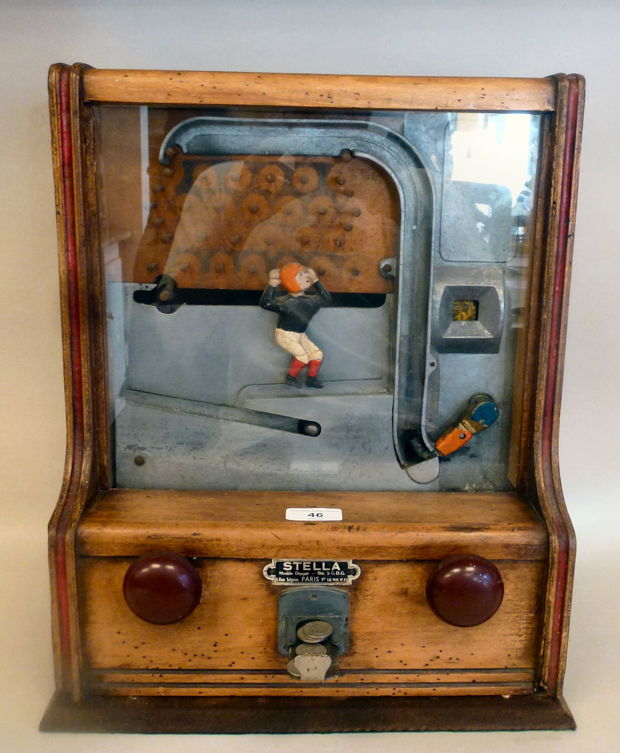 An early 20thC Stella mechanical football arcade game 17"h 14"w